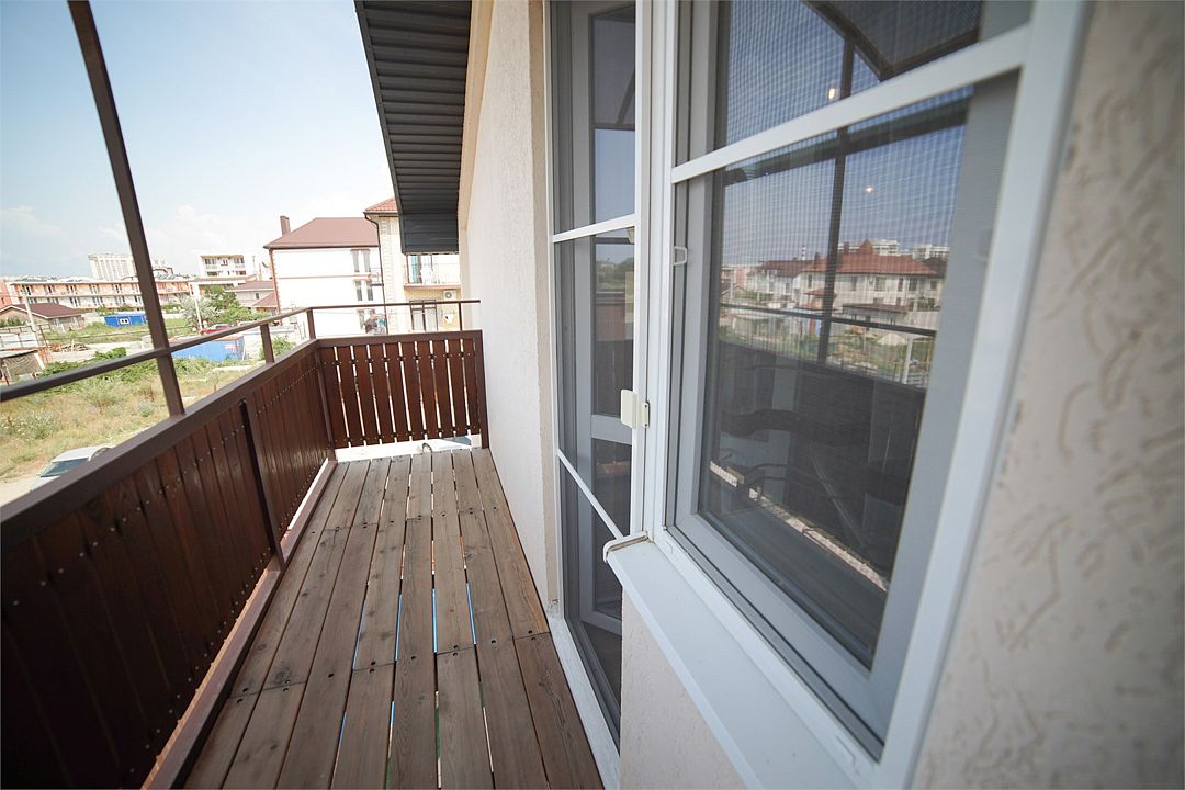 Wi-Fi, система климат-контроля, балкон, двуспальная кровать, шкаф для одежды, вешалки, обеденный стол, зеркало, комод, две комнаты, чайник, унитаз, раковина, душ, вид во двор, стаканы, диван-кровать, телевизор с плоским экраном, мини-холодильник, москитная сетка, номер для некурящихВ гостиничном номере