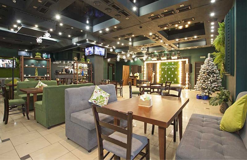 Продуманная современная система кондиционирования и вентиляции позволила создать в помещении кафе две зоны: для курящих и некурящих, что также является дополнительным (и весьма важным) удобством. В теплое время года действует также летняя оборудованная веранда. В качестве музыкального сопровождения гости всегда смогут послушать живую или фоновую музыку.