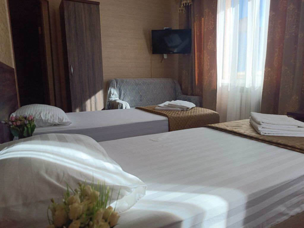 Гостевой дом предлагает широкий выбор комфортабельных номеров различных категорий, от уютных стандартных двухместных до просторных семейных четырехместных номеров с двумя комнатами и балконами, с собственными ванными комнатами. Каждая комната оснащена современной мебелью, включая удобную кровать с новым ортопедическим матрасом, обеспечивающим здоровый и спокойный сон. В вашем распоряжении будут также собственная ванная комната с душем и набором необходимых туалетных принадлежностей, кондиционер для поддержания комфортной температуры, телевизор с плоским экраном, холодильник и персональный сейф для ценных вещей. Бесплатный Wi-Fi на всей территории отеля обеспечит постоянную связь с внешним миром.