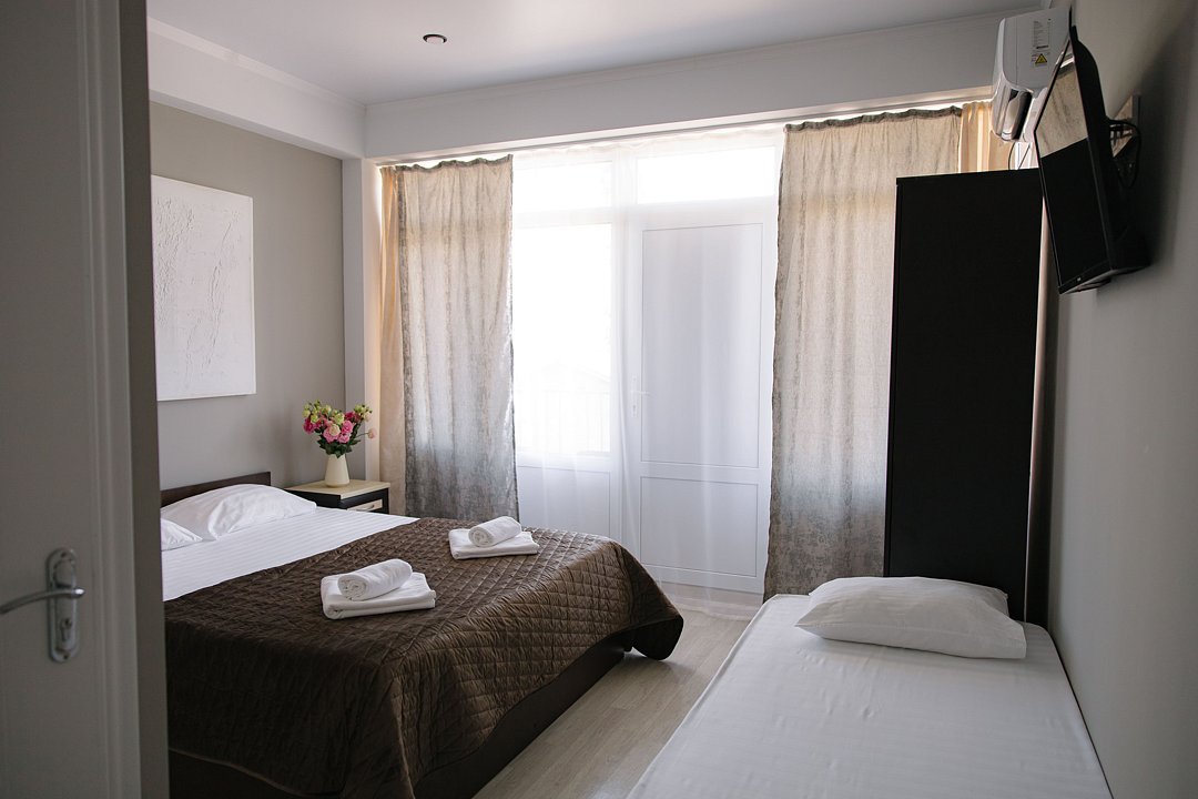 В номере: санузел, кондиционер, телевизор (в каждой комнате), холодильник, балкон.