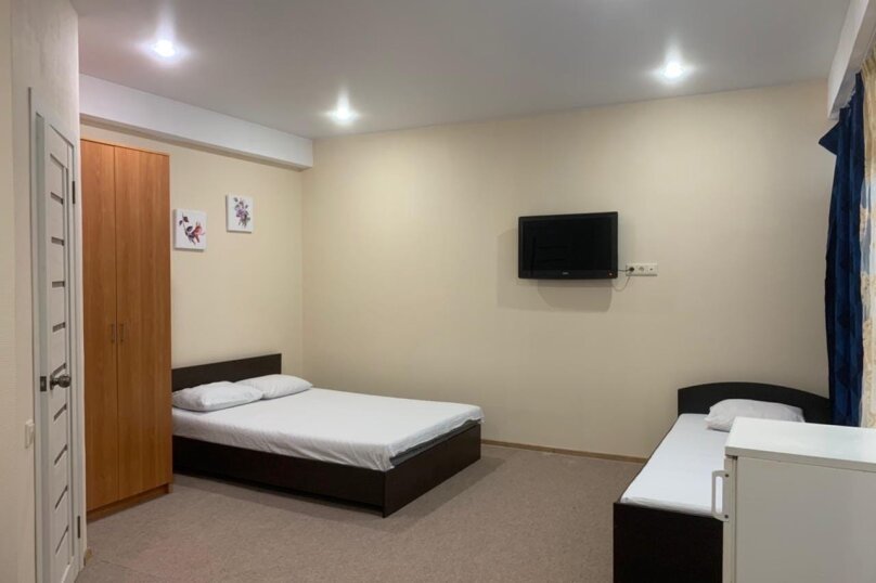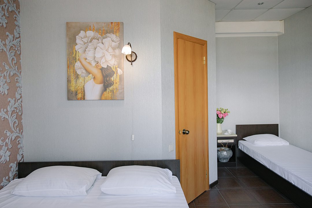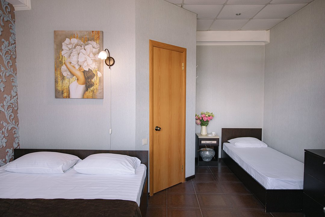 Однокомнатный номер с двуспальной и односпальной кроватями.