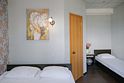Однокомнатный номер с двумя двуспальными и односпальной кроватями.