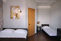 Однокомнатный номер с двуспальной и двумя односпальными кроватями.
