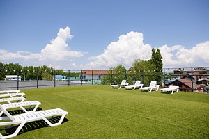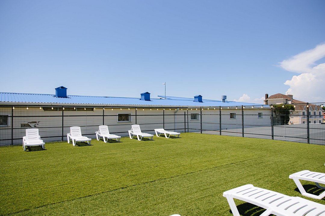Зона отдыха с лежаками на крыше.