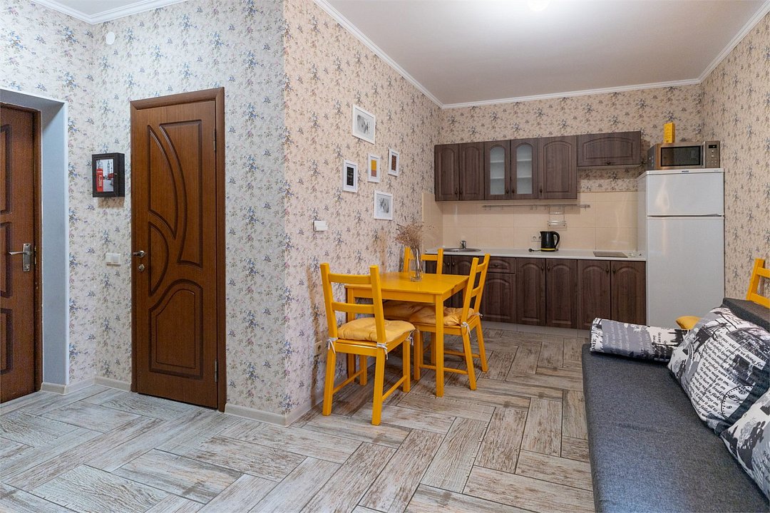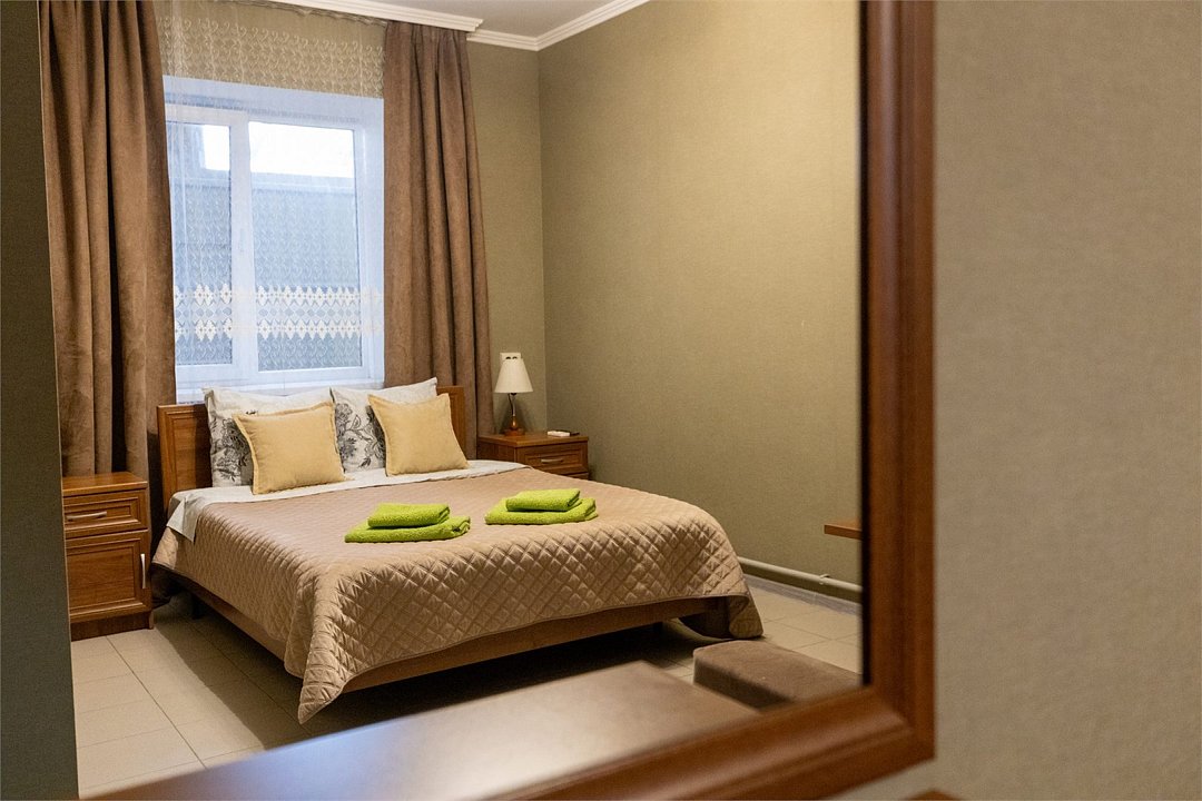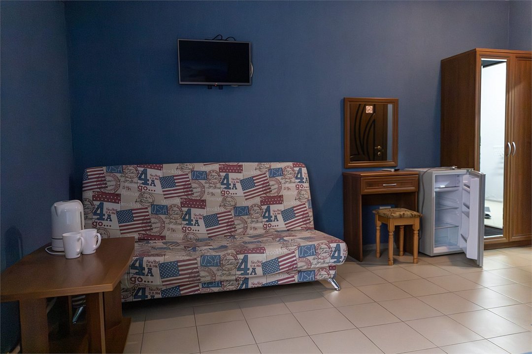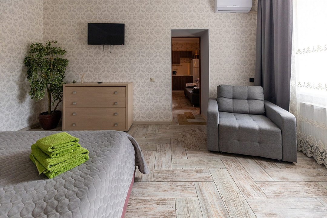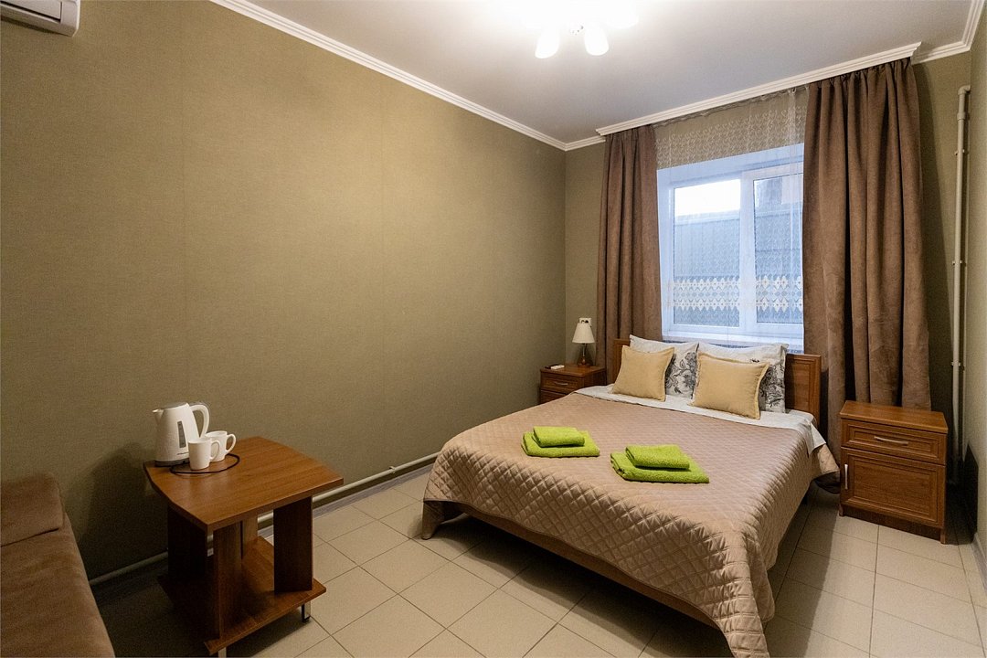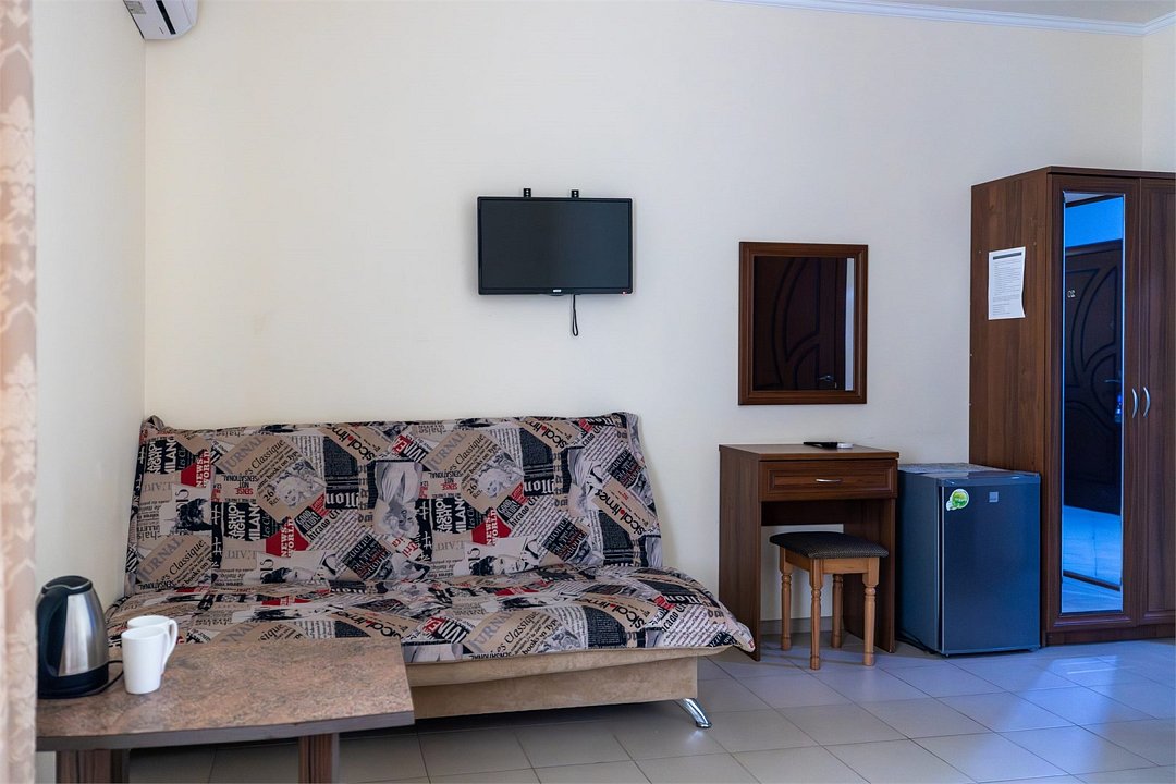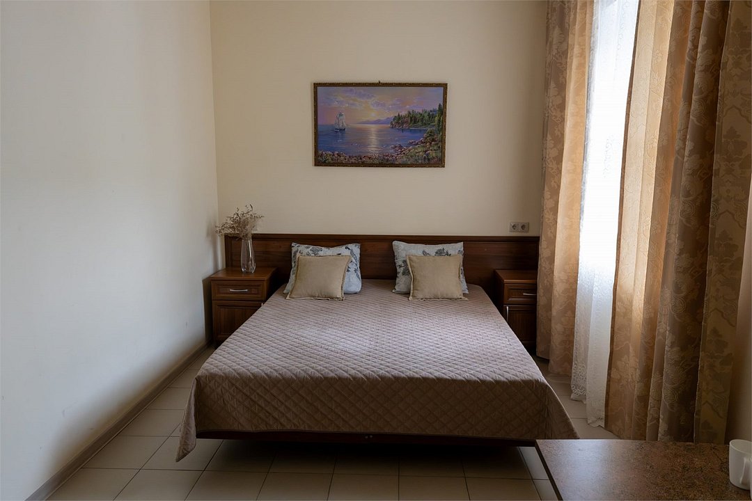 «Апартаменты» придутся по вкусу тем, кто хочет отдохнуть в Сукко с комфортом. Апартаменты представляют собой, скорее, однокомнатную квартиру, чем гостиничный номер в классическом понимании. Есть спальня с огромной двуспальной кроватью, кухня с чайником, СВЧ печью, гладильной доской, холодильником и варочной панелью и столовая-гостиная с обеденным столом, удобным диваном и телевизором. Апартаменты обставлены со вкусом, в них сделан свежий ремонт. В номере-апартаментах есть сплит, отдельный санузел и всё для комфортного отдыха, командировки, экскурсионной или деловой поездки.Услуги и удобства