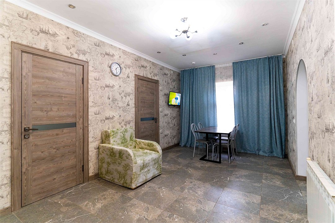 Двухкомнатные апартаменты с кухней и обеденной зоной. Четырех местный номер площадью 40 м² идеально подходит для комфортного размещения четырех человек. Дополнительное место кресло-кровать. Удобства в номере: - Ванной - Туалетом - ЖК Телевизором - Шкафом - Тумбочками - Сплит-системой Этот номер обеспечивает удобство и уют для отдыха.Услуги и удобства