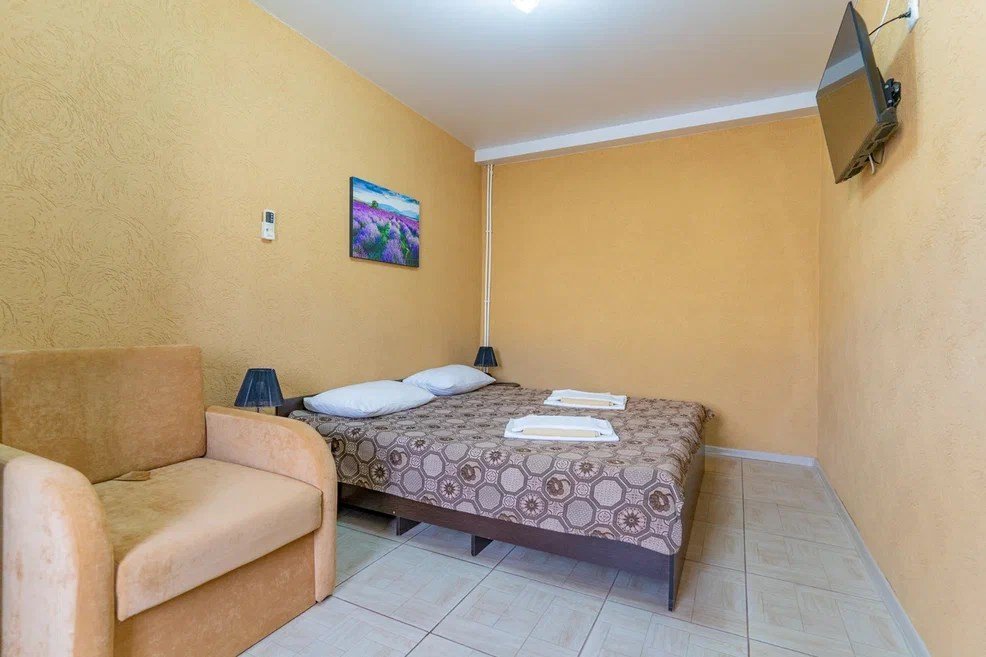 Двухместный номер площадью 18 м² идеально подходит для комфортного размещения двух человек с возможностью использования дополнительного места на кресле-кровати. Удобства в номере: - Душем - Туалетом - ЖК Телевизором - Шкафом - Тумбочками - Сплит-системой Этот номер обеспечивает удобство и уют для отдыха.Услуги и удобства