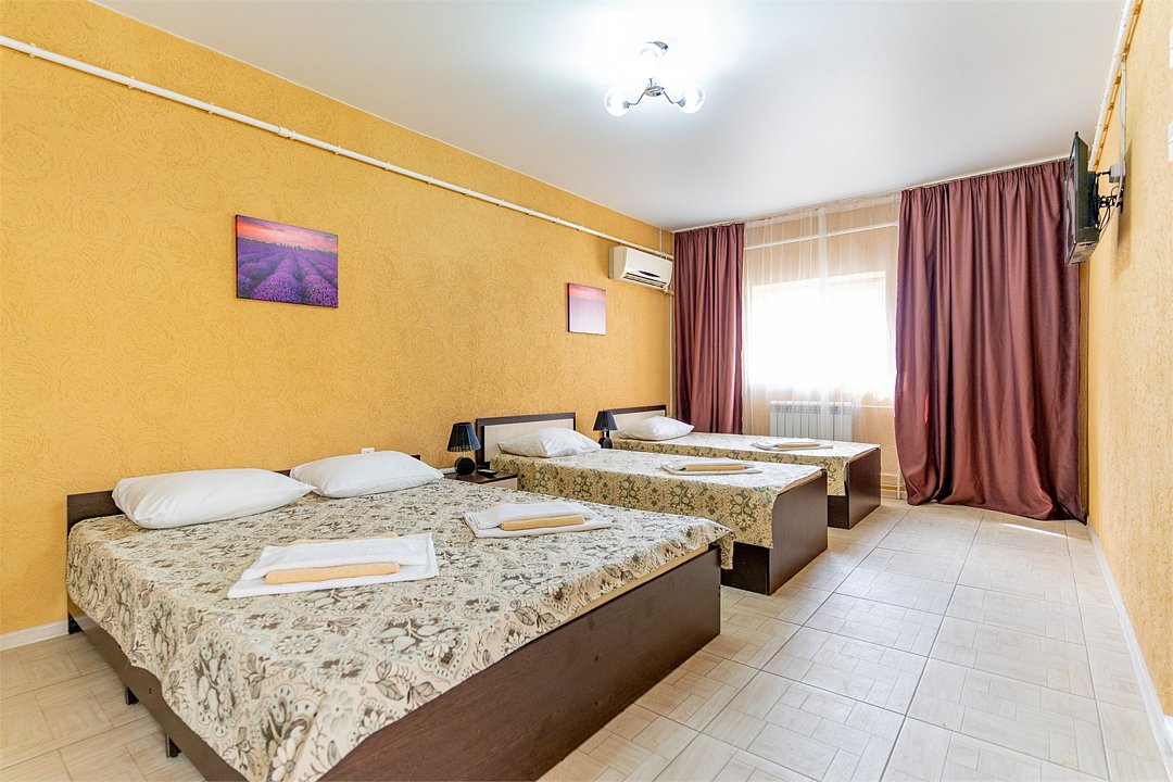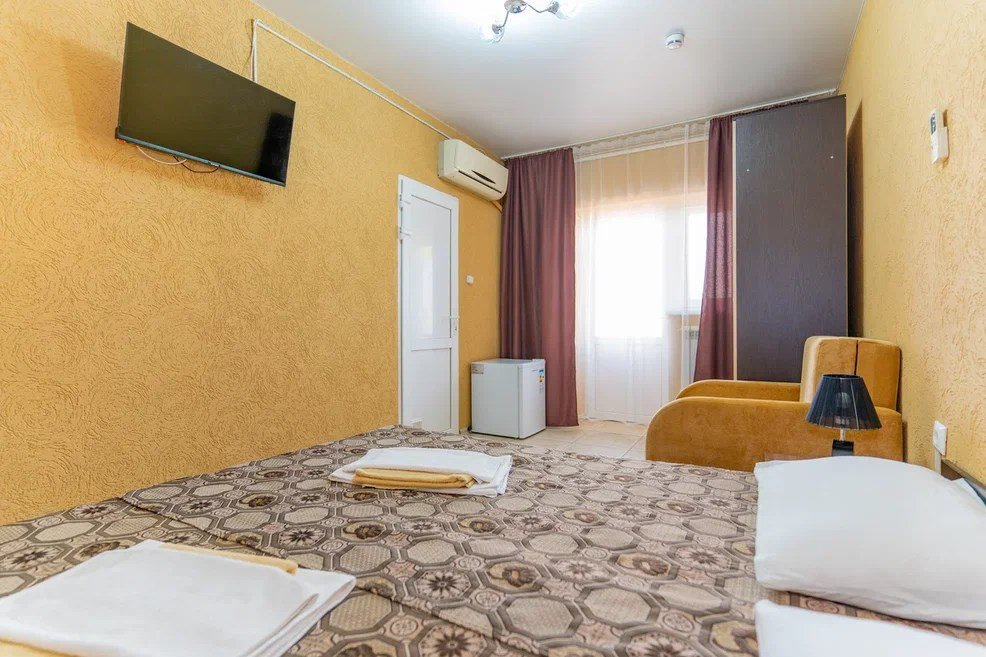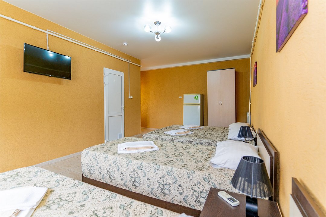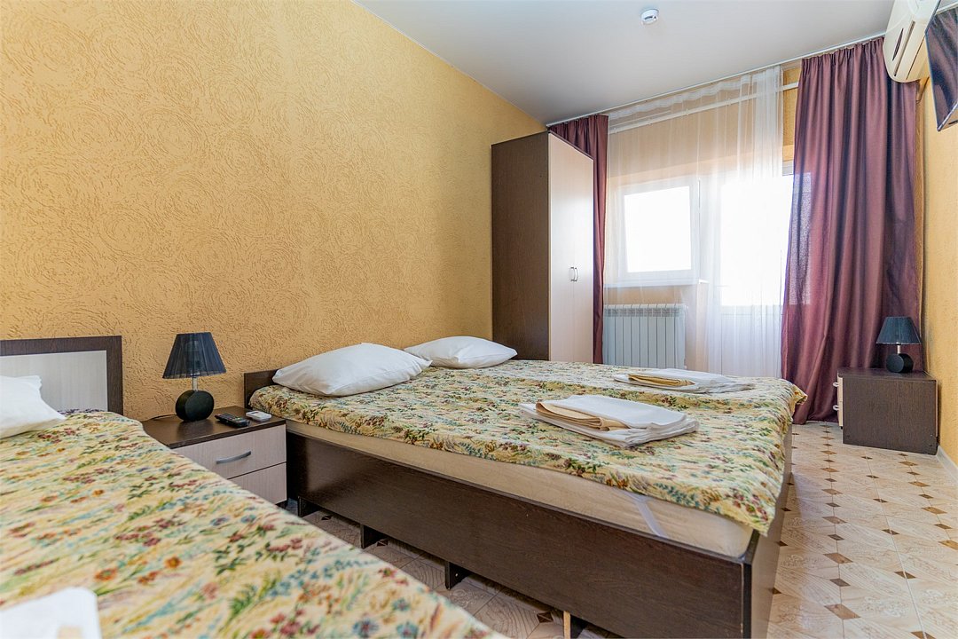 Трехместный номер площадью 20 м² идеально подходит для комфортного размещения трех человек с возможностью использования дополнительного места на кресле-кровати. Удобства в номере: - Душем - Туалетом - ЖК Телевизором - Шкафом - Тумбочками - Сплит-системой Этот номер обеспечивает удобство и уют для отдыха.Услуги и удобства