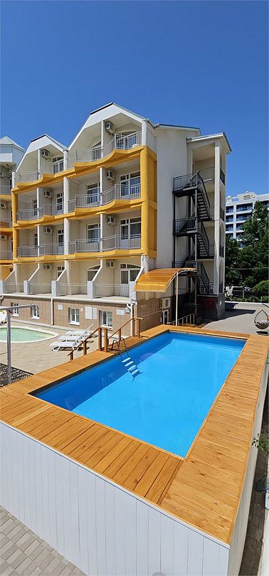 - С бассейном и собственным пляжем
