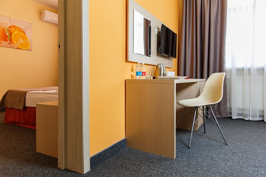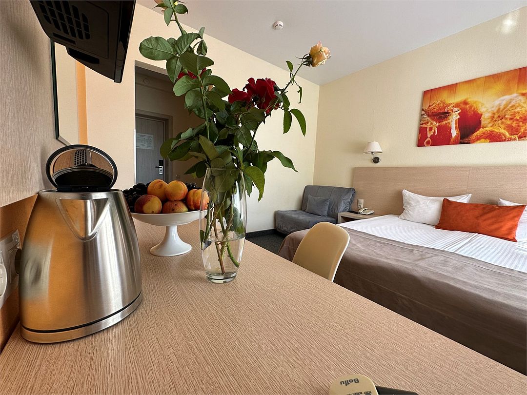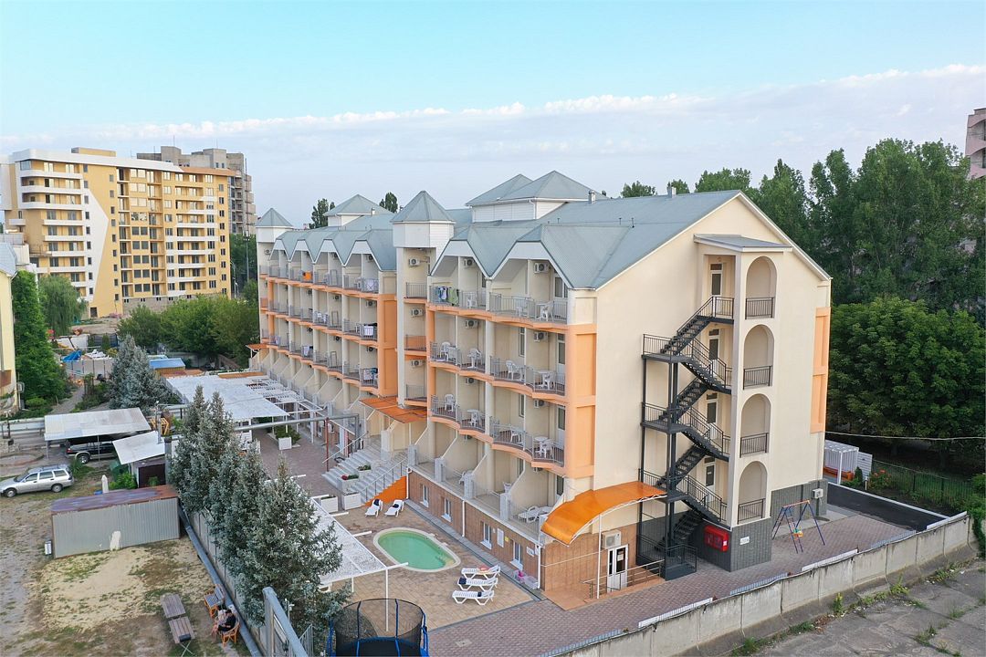 Путешествие с семьейНебольшой, но очень уютный бюджетный семейный отель. Лучший в своей ценовой категорииВ целом пребывание в отеле нам очень понравилось. Отлично подходит для семьи с шустрым двухлеткой. Территория компактная, далеко ваш деть не убежит). Бассейн действительно маленький, детский, но об этом отель честно пишет. Вообще,отель обо всем пишет честно. Номера хорошие, нам втроём тесно не было. Питание - скорее домашняя кухня, нежели столовская, выбор неплохой, все свежее, вкусное. Официанты - умнички, вежливые, быстрые). В целом, сервис хороший, уборка каждый день. И вежливость, вежливость и ещё раз вежливость. Мы это очень ценим. Отдельное спасибо за бесплатную охраняемую парковку непосредственно возле отеля. Тем не менее всё-таки два минуса есть. Первый и очень важный : небезопасные балконы, ребенок легко может пролезть через прутья. Второй минус: невозможно открыть окно, только балконную дверь, и привет, комарики))). А так отель на твердую четверку,даже с плюсом. Повторюсь, в своей ценовой категории. Молодцы, ребята. Так держать. Спасибо за хороший отдых