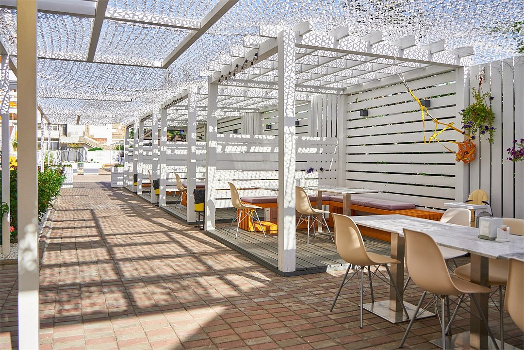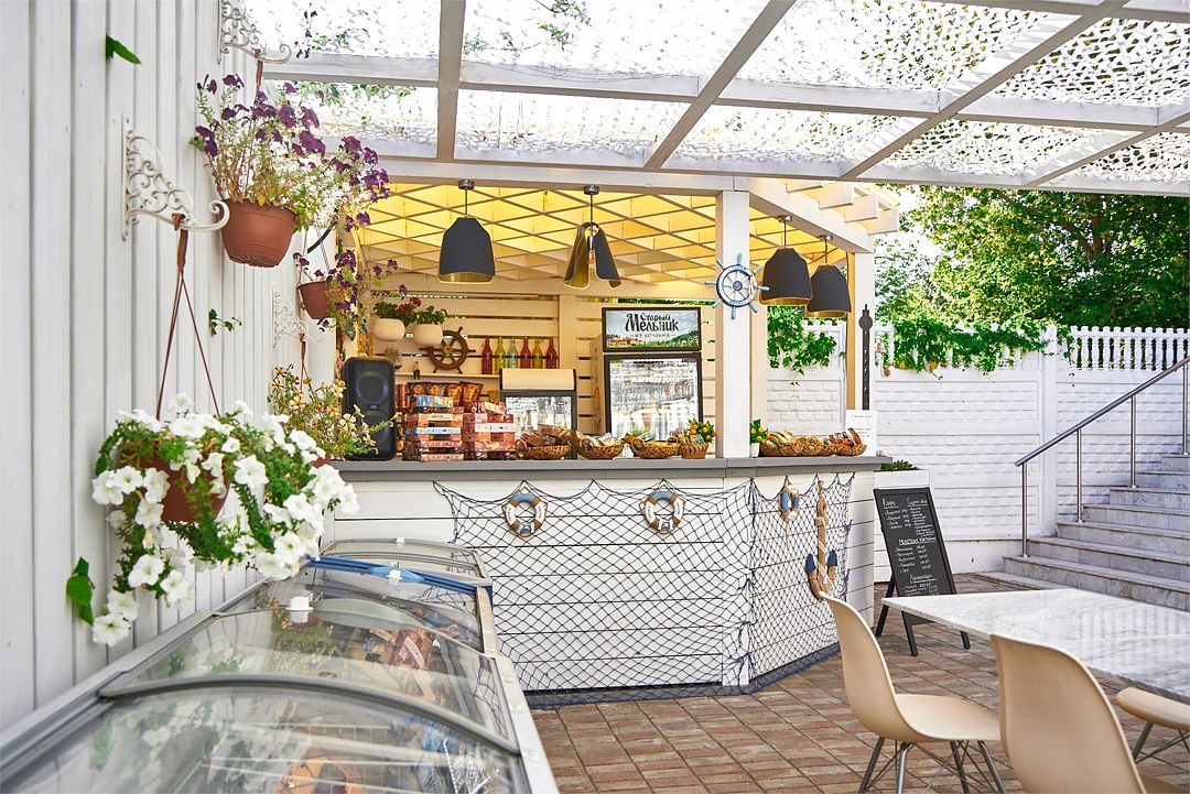 Зал не большой, столиков не много, но всегда можно найти свободный,официанты очень быстро убирают. На улице очень жарко есть.
