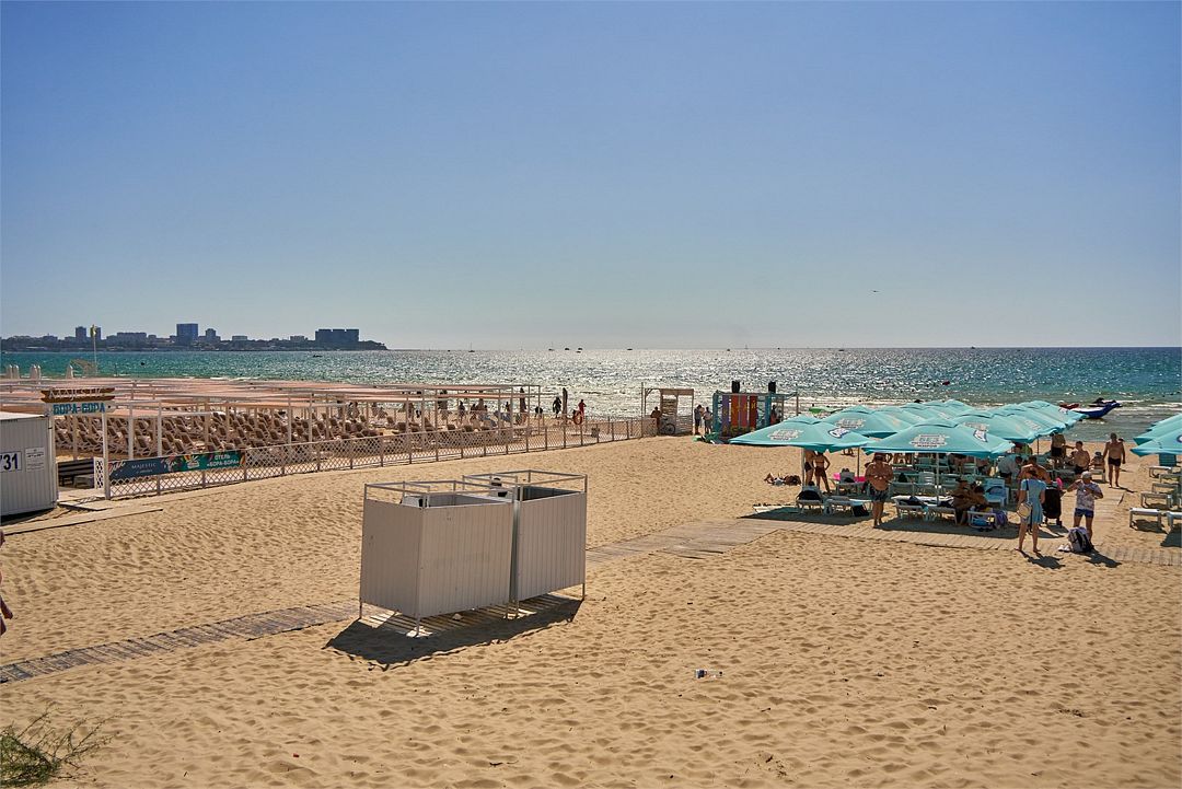 Тип пляжа: песчаный, городской, оборудованныйИнфраструктура: лежаки, зонтики, шезлонгиРасположение: в пешей доступностиПляж рядом с отелем «Мандарин» (350 метров) по сути примыкает к самому городу, начинается от реки Анапка в сторону Джемете, тянется вдоль Пионерского проспекта. Состоит из натурального мелкого песка.