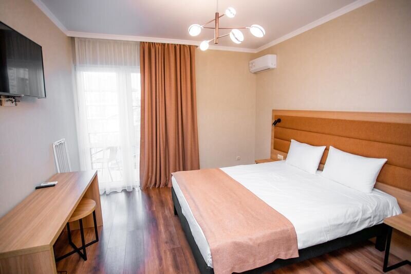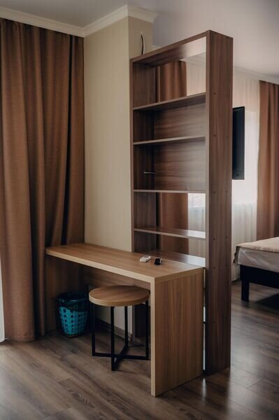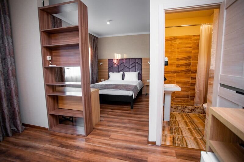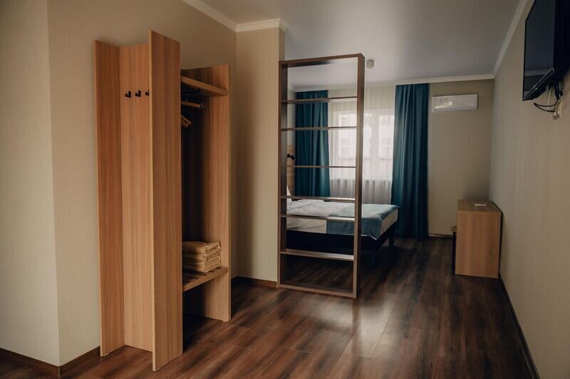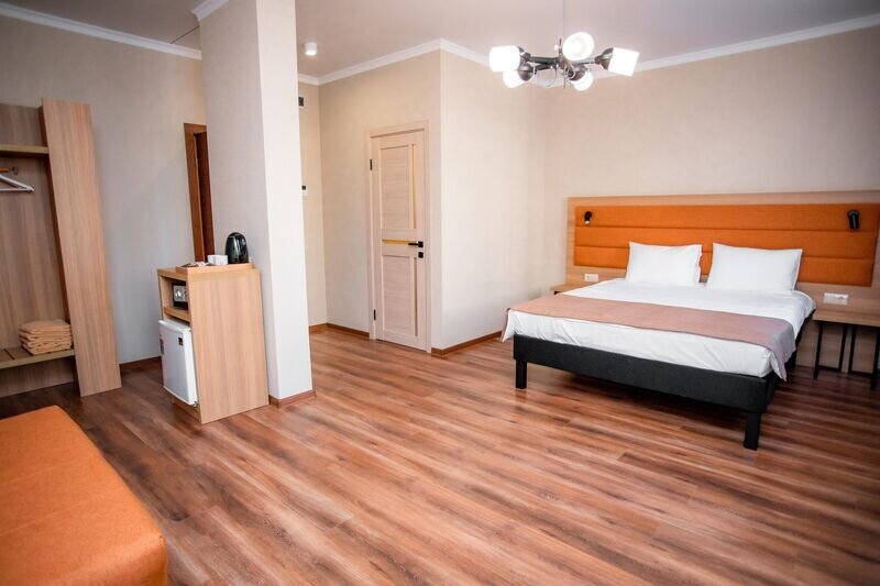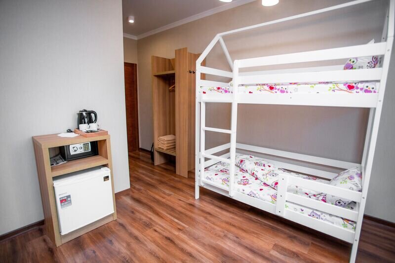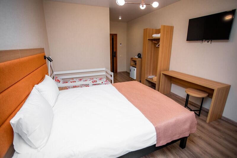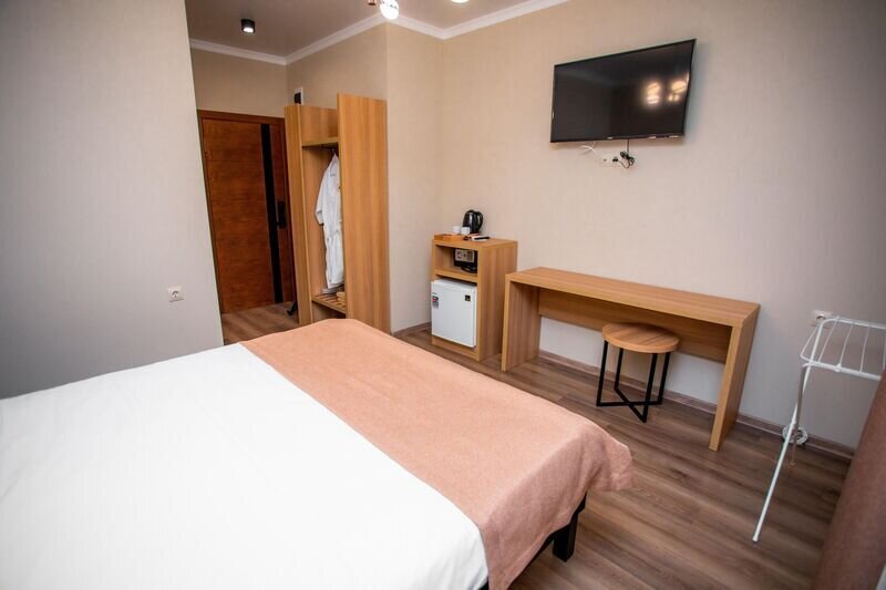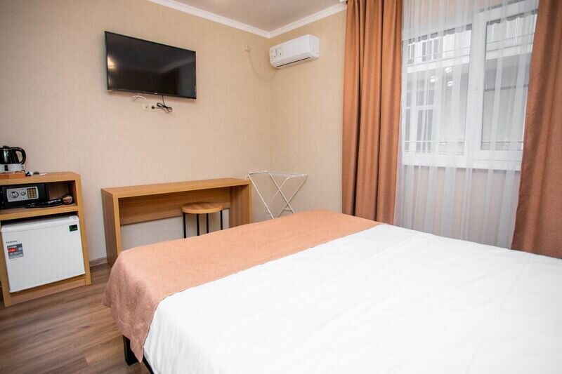 В каждом номере есть полезные мелочи: электрический чайник, фен, мини-холодильник, сейф, а также швейный набор, губка для обуви и щетка для одежды.