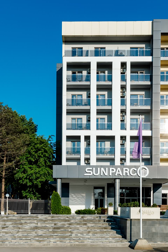 SUNPARCO HOTEL Ultra all inclusive расположен в самом центре курортной зоны на Пионерском проспекте города-курорта Анапа. Живописная территория отеля общей площадью 5,4 гектара богата на многолетние сосны, ели, платаны и другие зеленые насаждения.