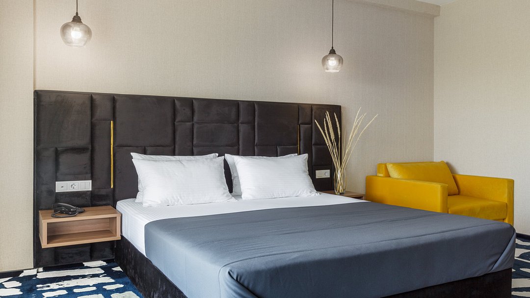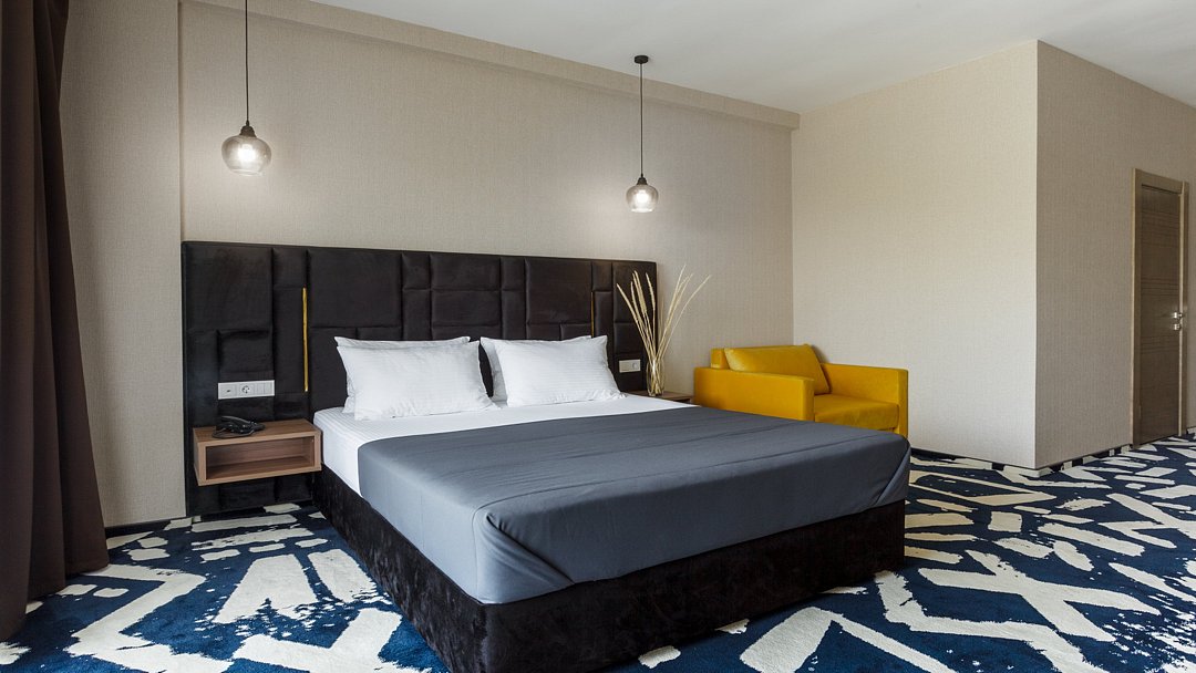 Одна двуспальная кровать, одно раскладное креслоВ гостиничном номере