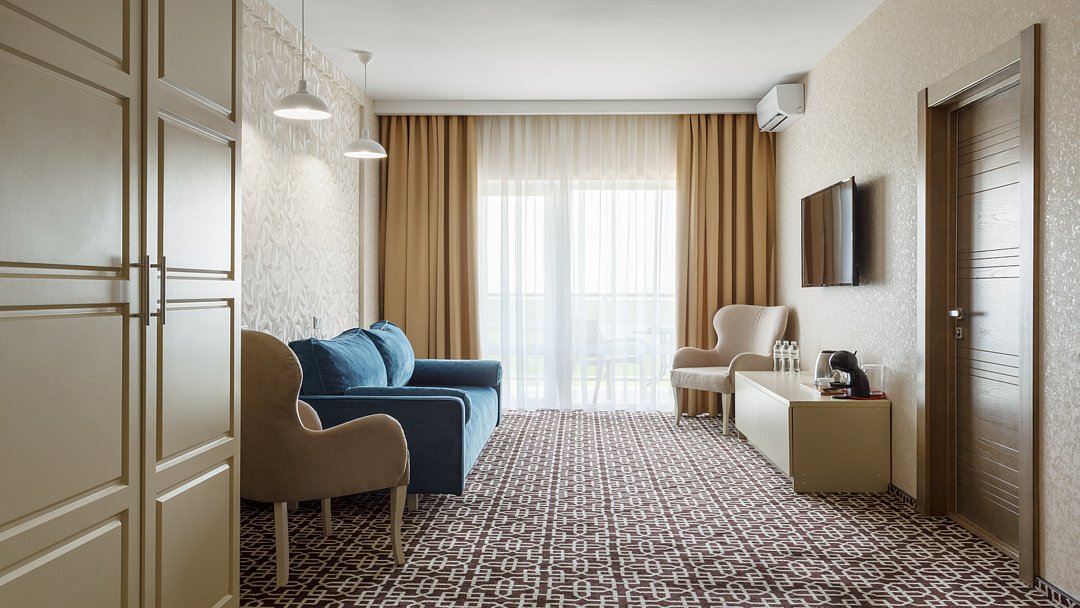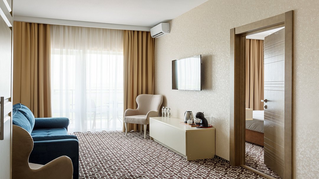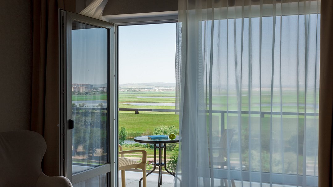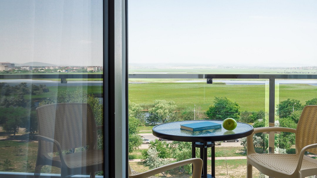 Номера расположены на 7 этаже в корпусе с панорамным видом на море и плавни реки Анапки.