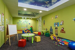 На территории отеля самый настоящий волшебный замок из сказки! Здесь юным гостям отеля можно весело попрыгать, побегать, скатиться с горки и найти товарищей для игр. На площадке имеются разнообразные спортивно-развлекательные снаряды и аттракционы для детей всех возрастов и активности.