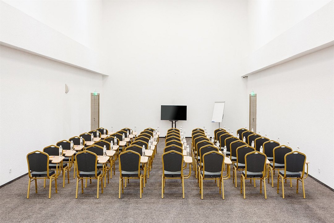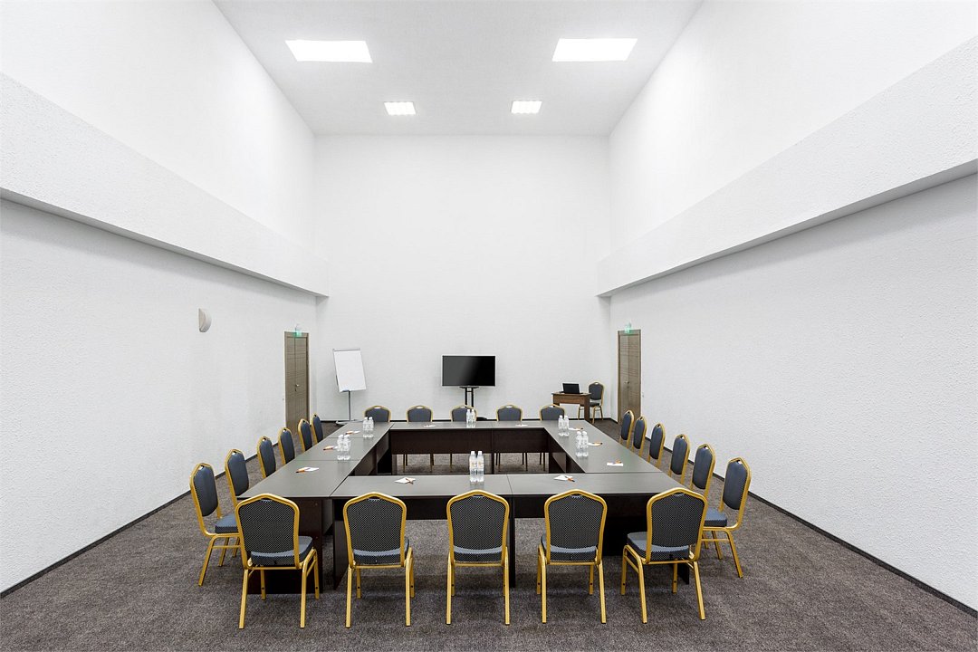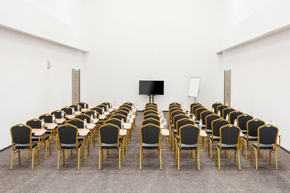 Для проведения крупных конференций идеально подходит конференц-зал вместительностью до 250 человек.