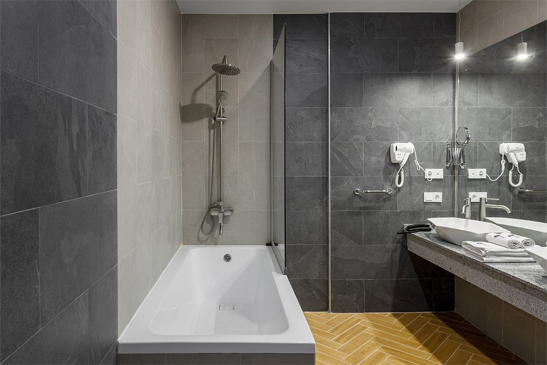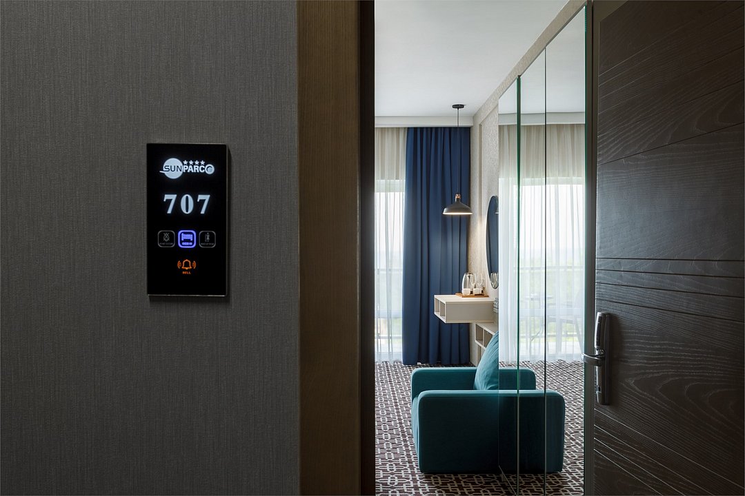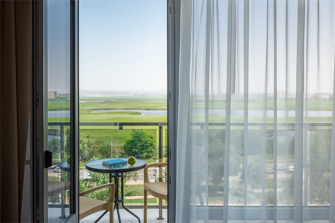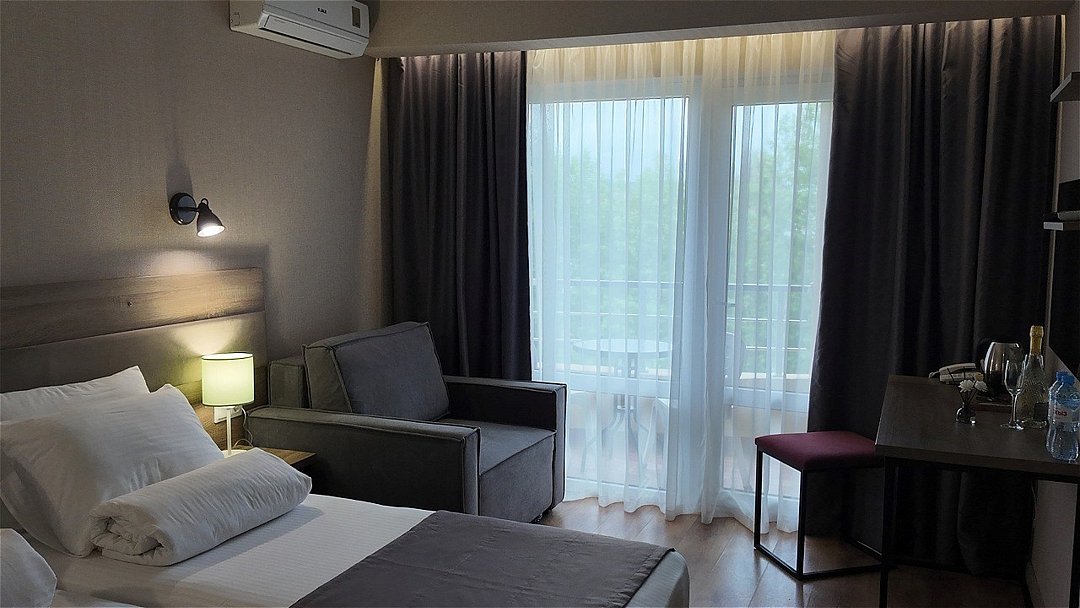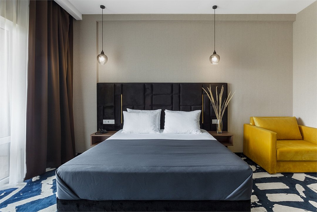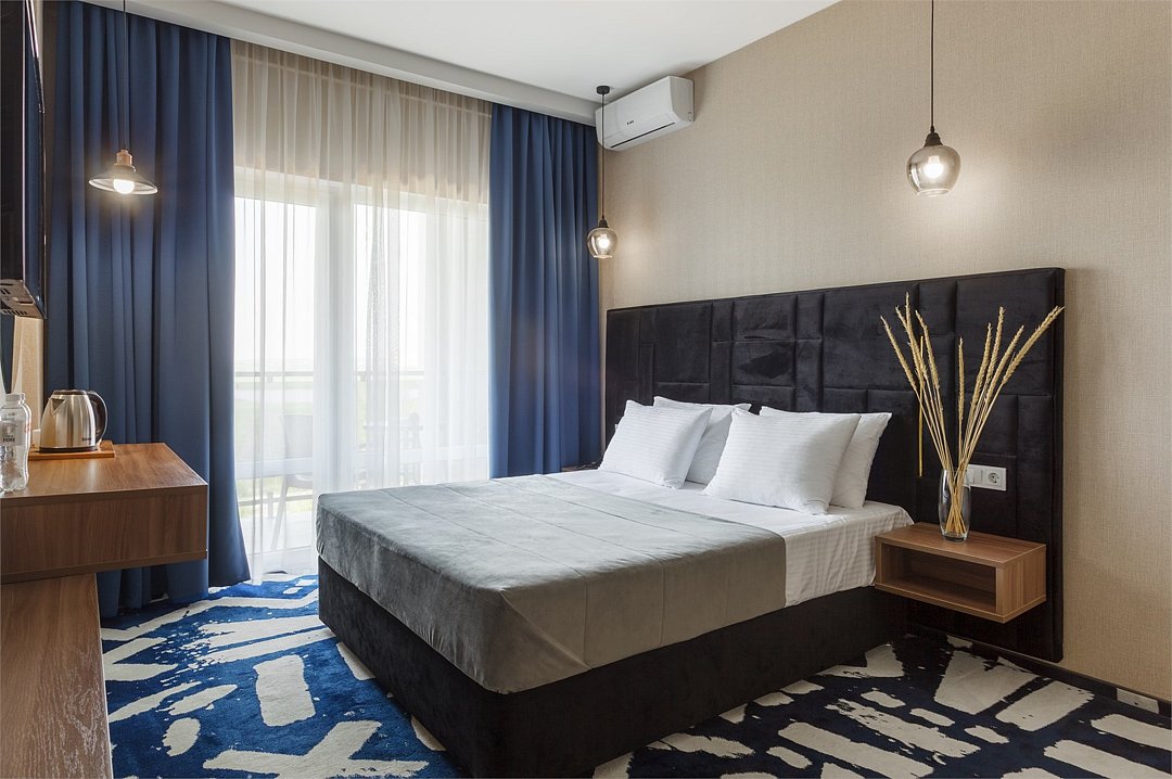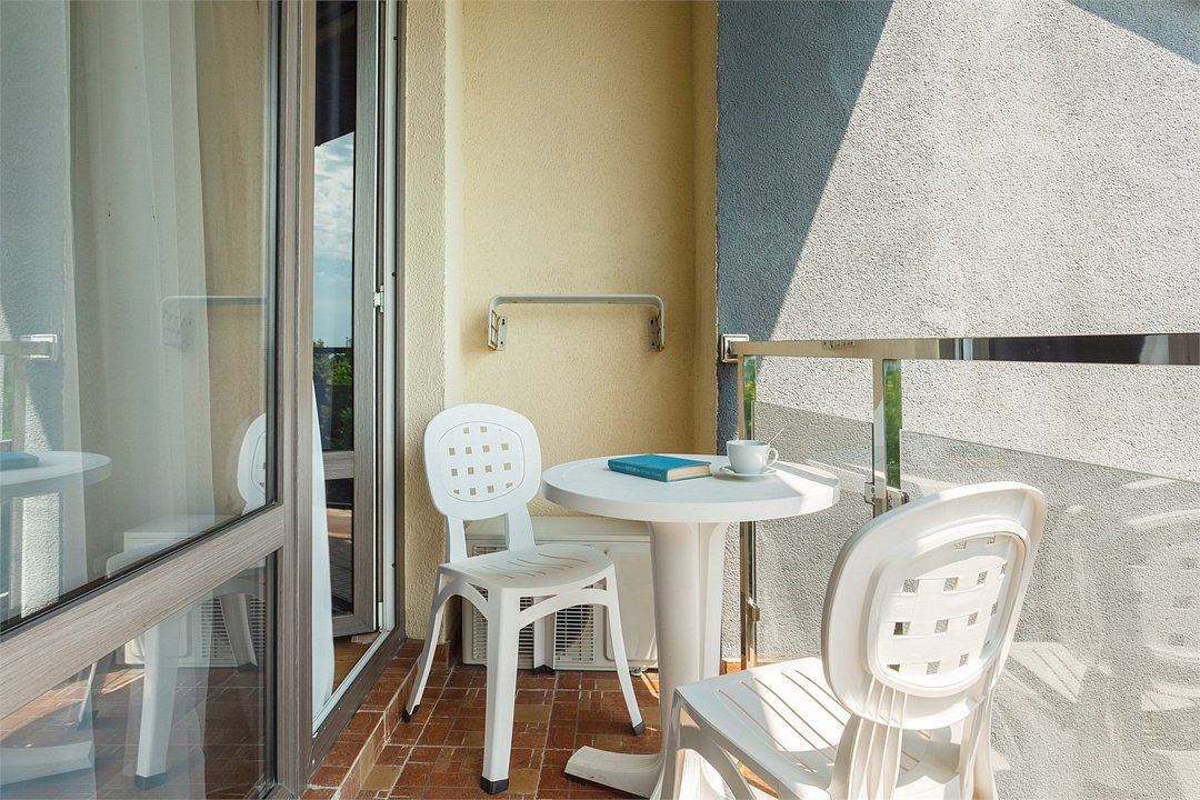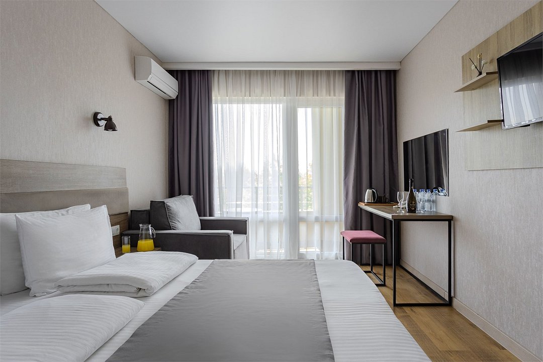 Просторный однокомнатный номер с балконом. Номера расположены со 2 по 7 этажи в корпусе. Размещение: двоих гостей на основных местах, с возможностью предоставления 1 дополнительного места (кресло-кровать 80×190 см) для детей до 14 лет включительно + 1 ребёнок до 5 лет включительно, без места, с питанием. В номере: две односпальные или одна двуспальная кровать, ТВ, холодильник, чайная станция, сплит-система, телефон, сейф, балкон с летней мебелью и сушилкой для белья. В ванной комнате: душ, раковина, унитаз, зеркало, фен, банные принадлежности и гостиничная парфюмерия.Услуги и удобства