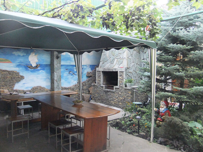 Питание гостей не организовано, однако гости могут готовить на общих кухнях. Во дворе выделен уголок для мангала с навесом и необходимой мебелью.
