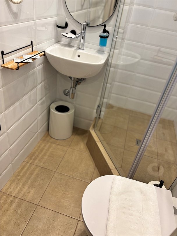 Однокомнатный номер с диваном и балконом. Санузел с душевой кабиной и феном . В 2021 году проведена полная реконструкция. Современный дизайн в спокойных тонах. Мягкие прикроватные панели с светильниками у изголовья. Подходит для проживания 1 - 2 -3-х человек + ребенок до 6 лет. Есть возможность поставить детскую кроватку для ребенка до 3-х лет. На этаже расположен кулер с водой и гладильная доска с утюгом. Для того чтобы воспользоваться микроволновкой, обратитесь к администратору.Услуги и удобства