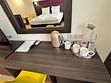 В номере было все - мечта командировочного - утюг, доска, микроволновка, холодильник, чайник и даже полноценная газовая плита и стиральная машина-автомат. В шкафах приличный набор посуды. двухспальная кровать, большой шкаф. Разумеется кондиционер в спальне. санузел совмещенный с ванной. Два телевизора (ДВА!!!) на балконе были даже веревочки с прищепками. на кухне кроме гарнитура был еще стол. Отдельная тема по горячей воде - горячая вода идет от газовой колонки - хочешь горячей воды - научись пользоваться. (А вот инструкции от нее, в отличии от стиралки нет).