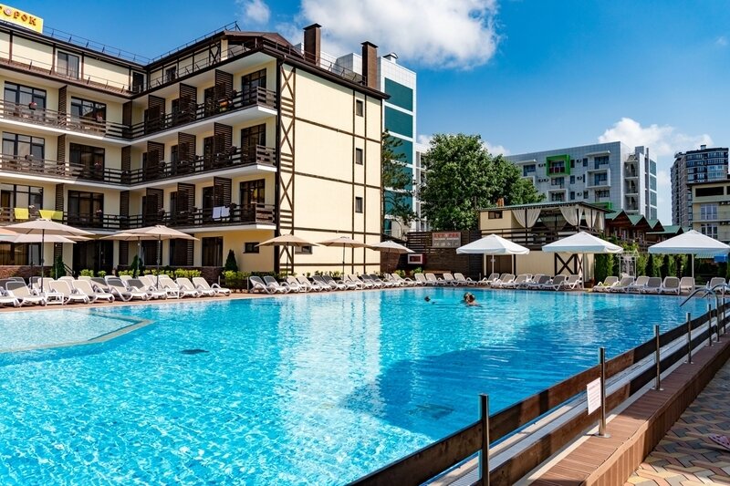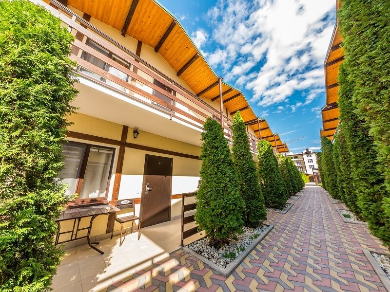 Гостевой комплекс «Хуторок» построен недалеко от моря. Находится он на второй береговой линии Пионерского проспекта города Анапы, в экологически чистой зоне. Комплекс полностью соответствует своему названию – он состоит из коттеджей, выполненных в деревенском стиле, и четырехэтажного корпуса с комфортабельными номерами. По соседству есть множество симпатичных кафе, ресторанов и других объектов курортной инфраструктуры. Но даже без них «Хуторок» радует разнообразием и приятной обстановкой – на его ухоженной территории много зелени, цветов, необычных клумб.