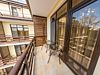 Номер №92 категории делюкс, расположен на втором этаже главного корпуса (там же где стойка регистрации). Окна выходят на другой, двухэтажный корпус, слева - частично вид на бассейн. В номере есть балкон, на балконе 2 стула, столик, настенная сушилка и напольная комнатная сушилка.