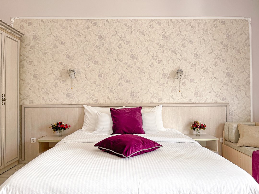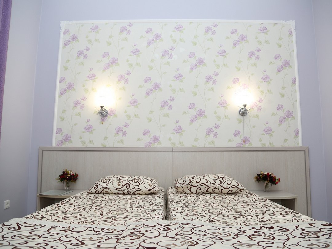 Улучшенный 2-местный. Имеются номера с балконом и без балкона, с двуспальной кроватью или двумя односпальными кроватями. В номере: телевизор, WI-FI, холодильник, чайник, сплит-система, набор посуды, шкаф для одежды, стол, стулья, постельные принадлежности. Ванная комната: душевая кабина, санузел, туалетные принадлежности, набор полотенецВ номере
