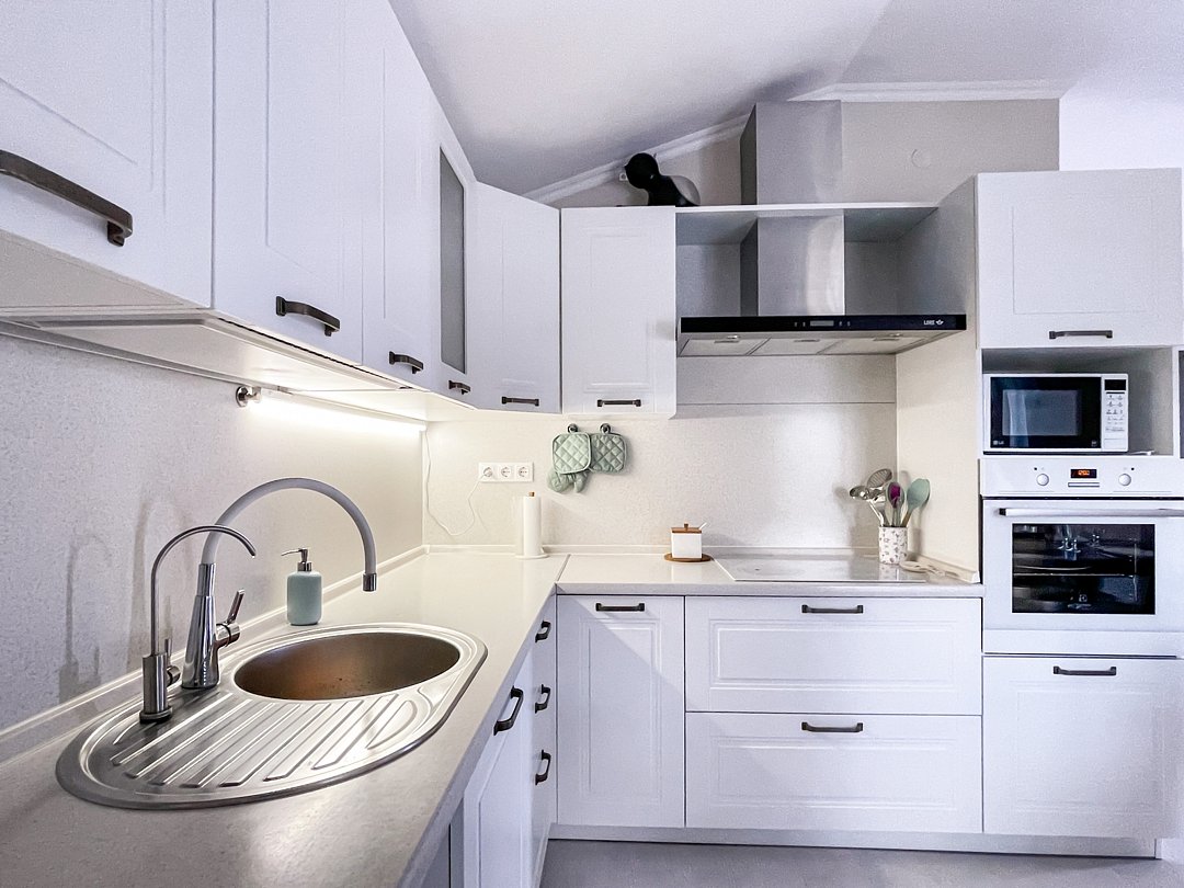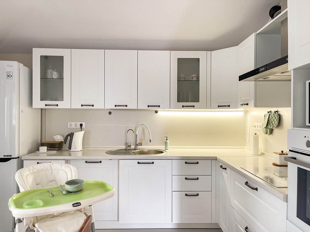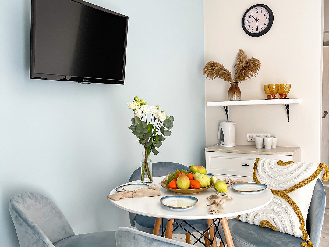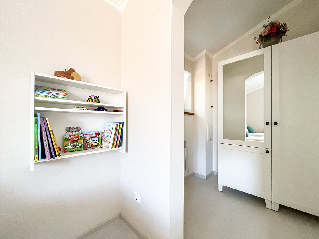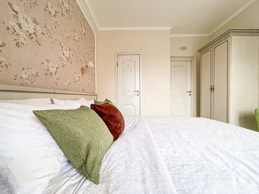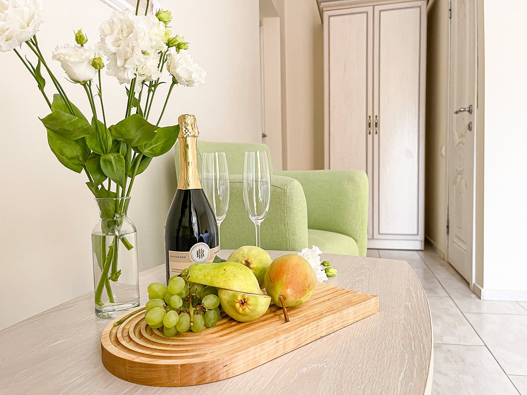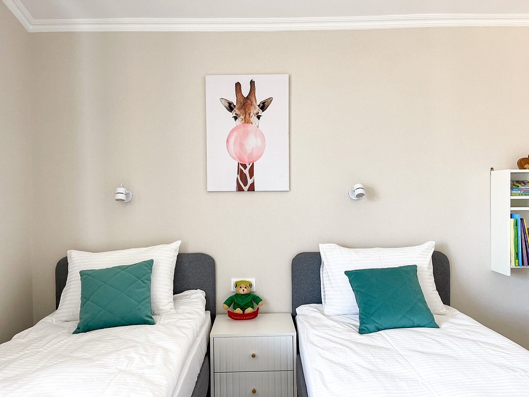 В апартаментах: -детская комната (с двумя односпальными кроватями и гардеробной комнатой) с балконом -спальня (с двуспальной кроватью и большой гардеробной) с балконом -кухня (микроволновка, духовой шкаф, электроплита, посудомоечная машина, холодильник) -гостиная (раскладной диван) -рабочая зона -ванная комната -отдельная большая терраса. -Сплит-системы во всех комнатах. -Спутниковое ТВ -скоростной Wi-FiВ номере