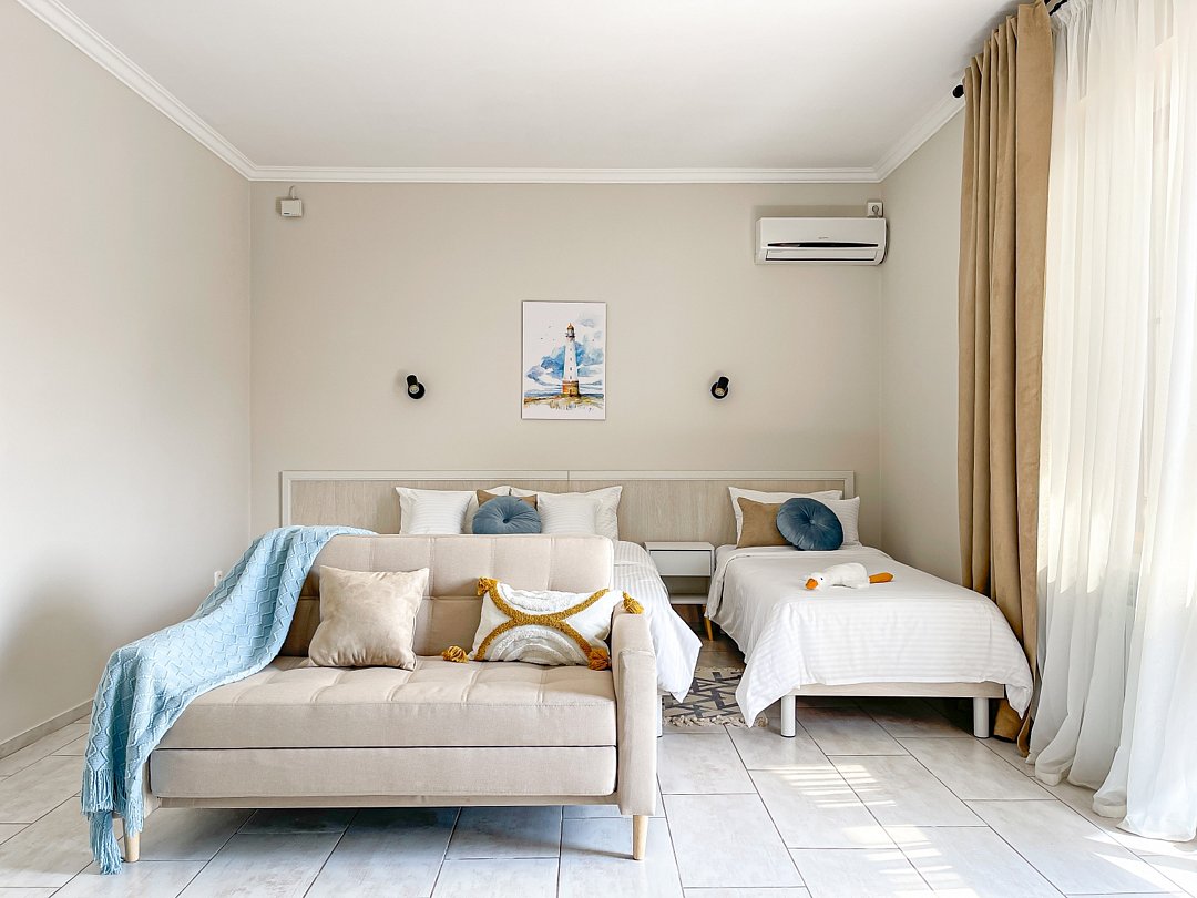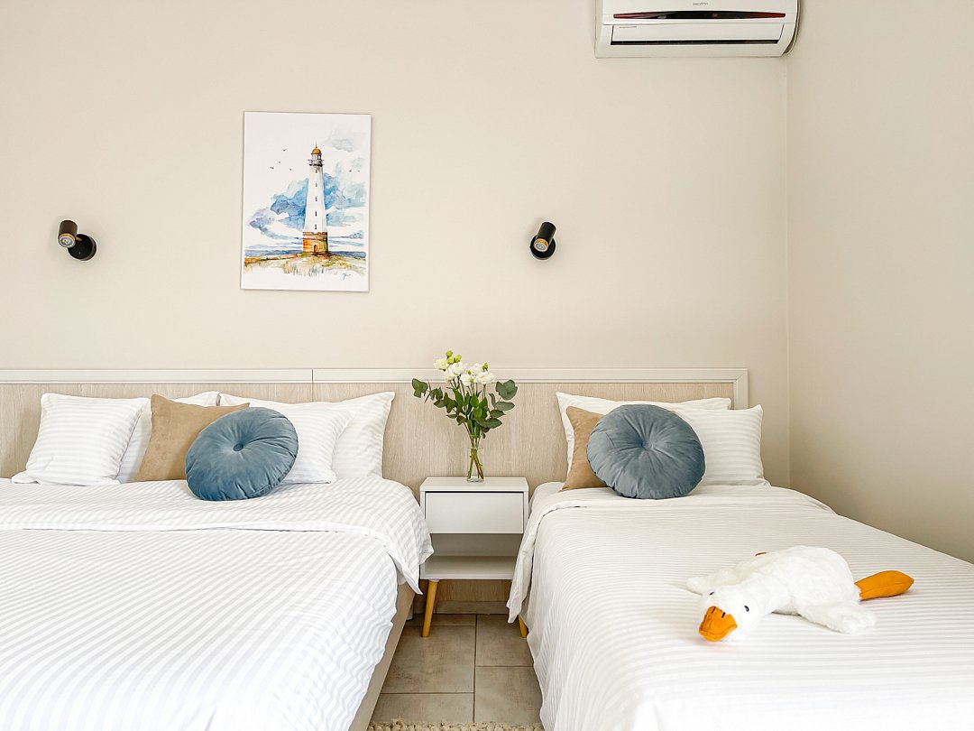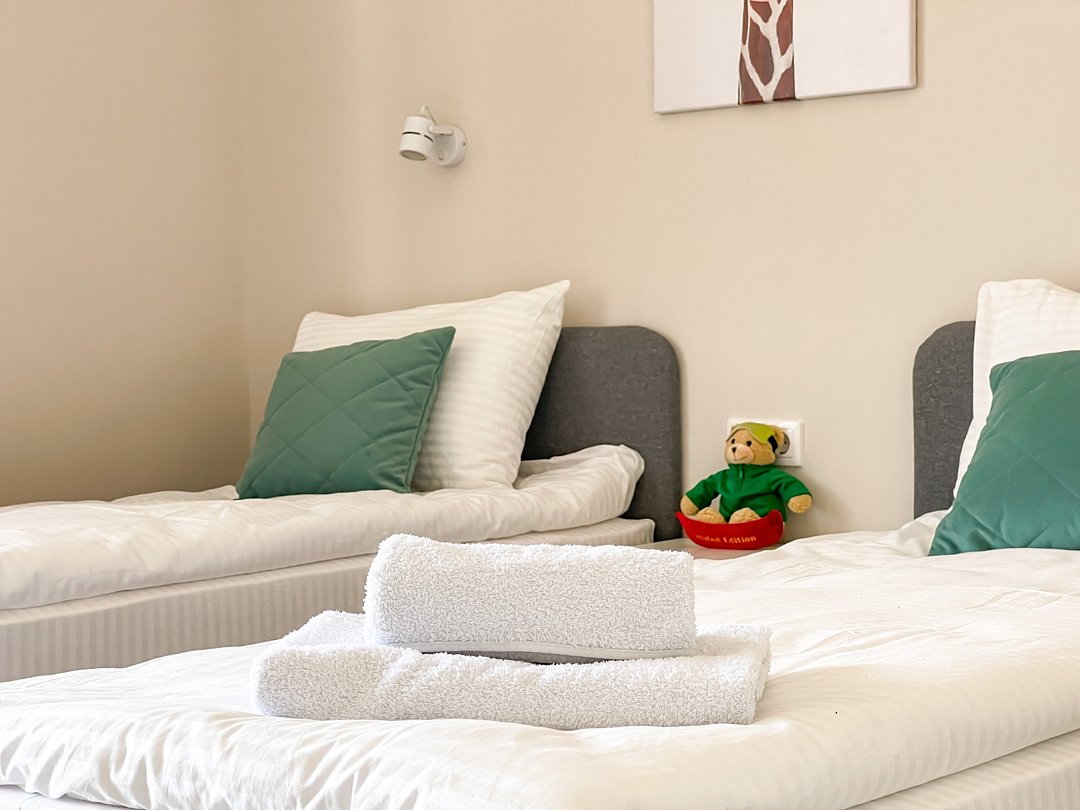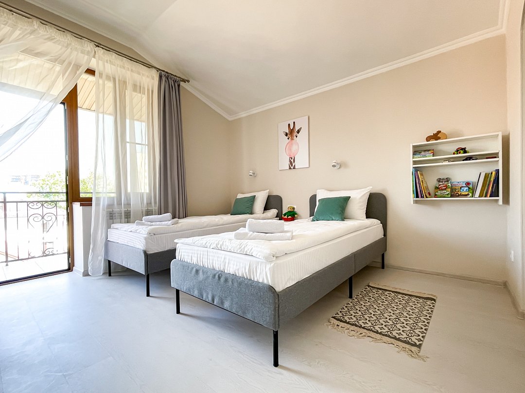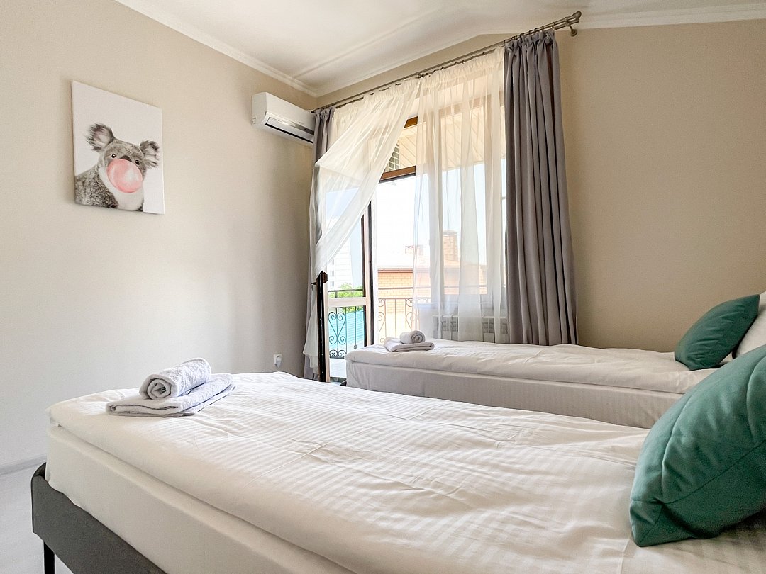 2 односпальных или двуспальная кровати + диван-кровать - основное место, с/у, душ, ТВ.