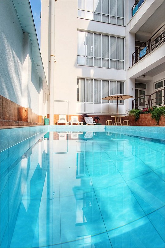 Тип бассейна: открытый бассейнВода в бассейне: подогреваемый бассейнРядом с бассейном: шезлонги, зонтикиРазмеры: 2 x 8 мПлощадь: 16 м²На территории отеля Вас ждет освежающий бассейн с чистой пресной водой, который станет отличным спасением от летней жары. Для вашего максимального комфорта вокруг бассейна расположены зонты и удобные шезлонги, где можно расслабиться и отдохнуть. Приятным бонусом станет то, что бассейн оборудован системой подогрева, что позволяет гостям купаться в комфортных условиях с начала мая и вплоть до конца октября.