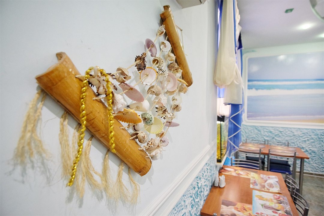 В интерьере сделан акцент на морскую тематику.