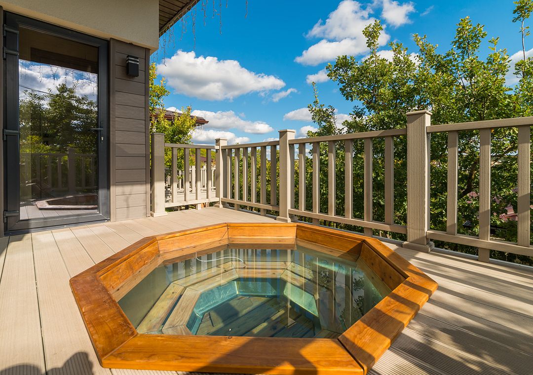 На террасе, окруженной великолепными пейзажами, гости могут наслаждаться традиционными банными процедурами на свежем воздухе. Банный чан с подогретой водой, температура которой составляет тридцать семь–сорок градусов, создаст атмосферу уюта и тепла даже в холодные дни.