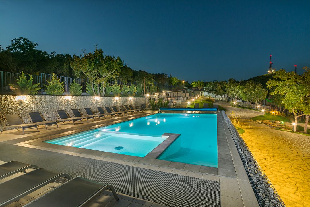 На территории Коттеджного комплекса «MONS» находится просторный открытый бассейн, идеально подходящий как для детей, так и для взрослых. Оснащенный гейзером и подсветкой, он предлагает возможность освежиться, а также расслабиться на шезлонгах под зонтом, создавая атмосферу полноценного отдыха.