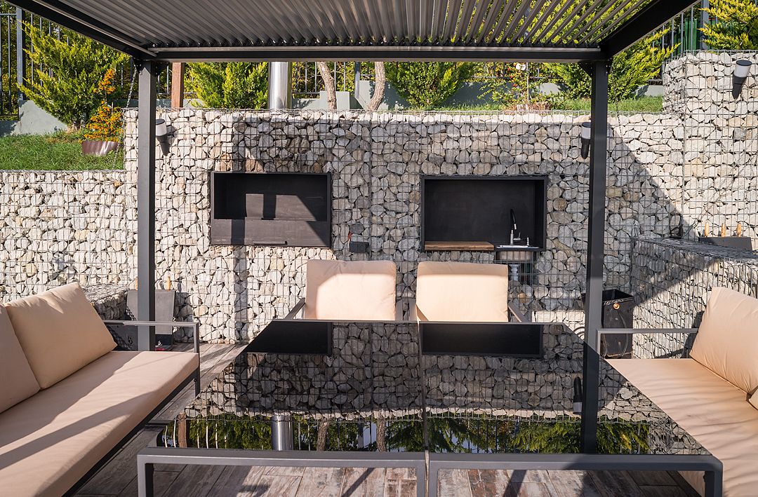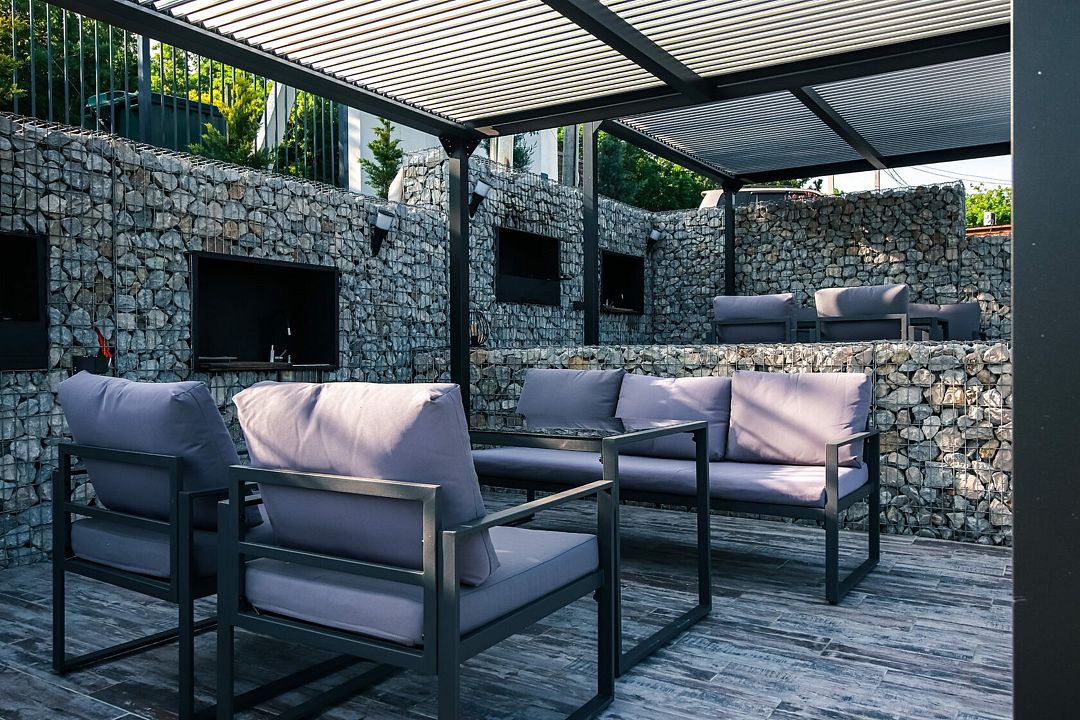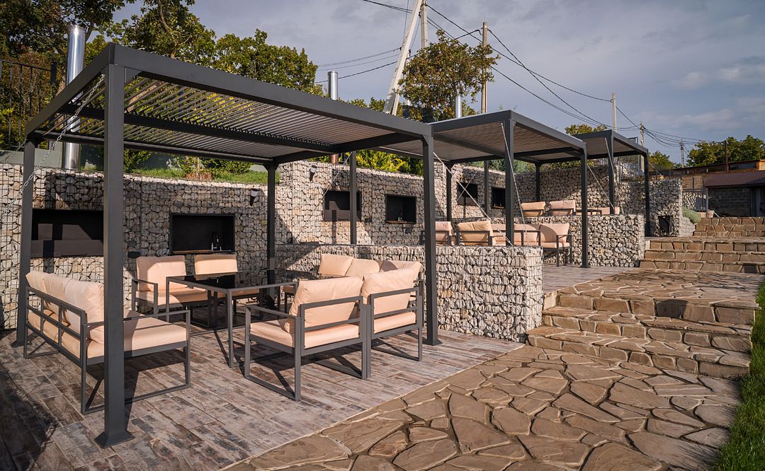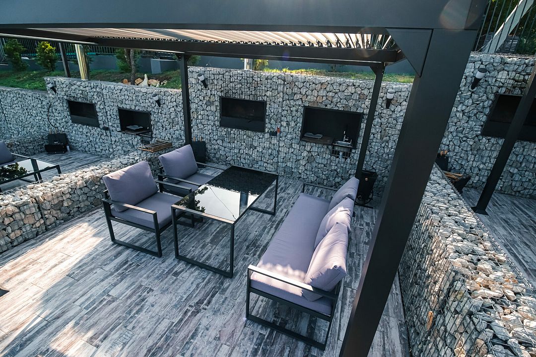 Лаунж-зона включает три мангальные площадки, оснащенные всем необходимым для приготовления блюд на гриле под открытым небом. Стильные габионы обеспечивают приватность, а удобные кресла и диваны идеально подходят для непринужденного общения.
