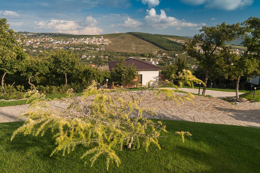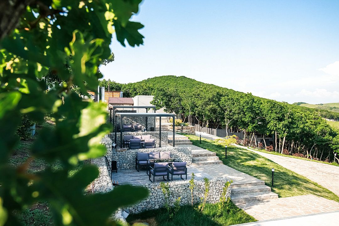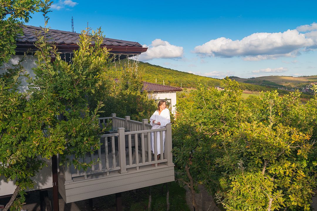 На высоте 240 метров, в тени дубовой рощи, расположено место, где царит тишина, нарушаемая лишь пением птиц и звуками цикад. Это идеальное пространство для расслабления, поиска внутреннего баланса и наполнения энергией.