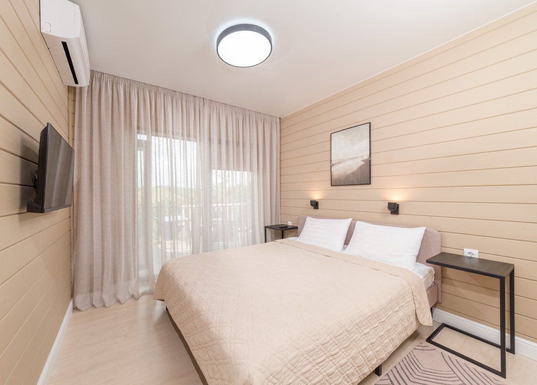 Комфортабельный 2-х комнатный номер с прихожей, просторным совмещенным санузлом и балконом. Подходит для размещения 5 гостей и 1 младенца.