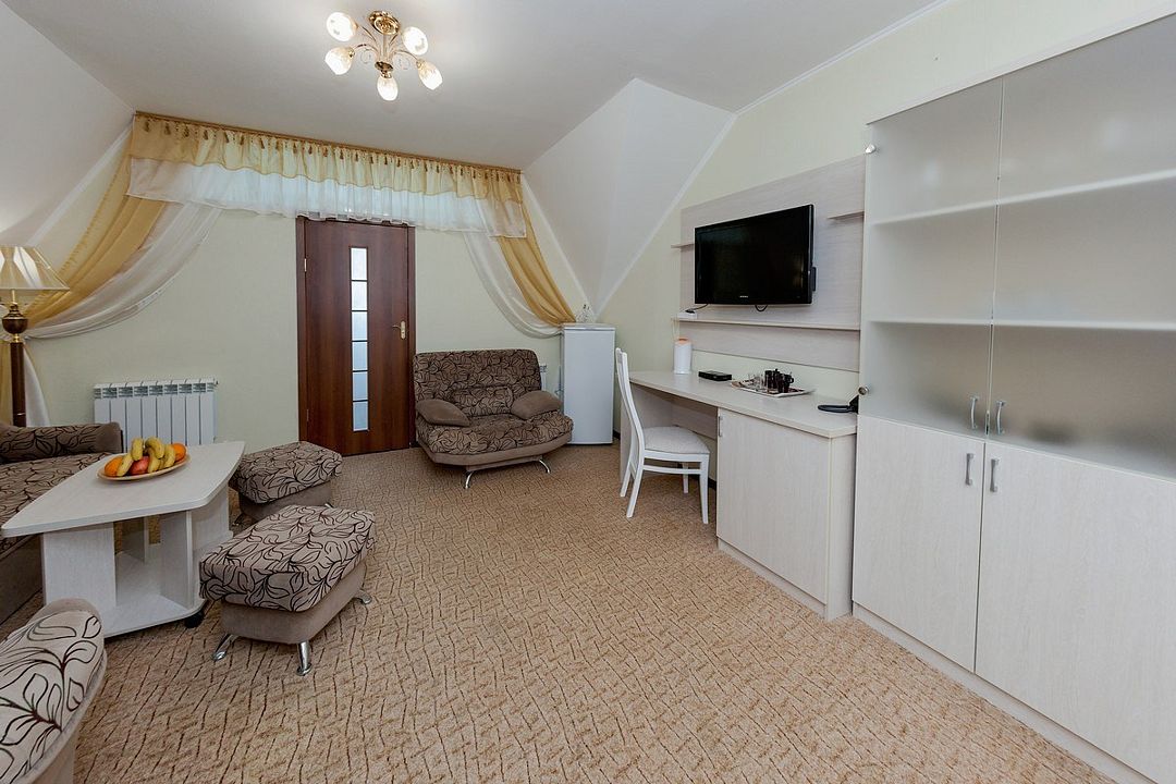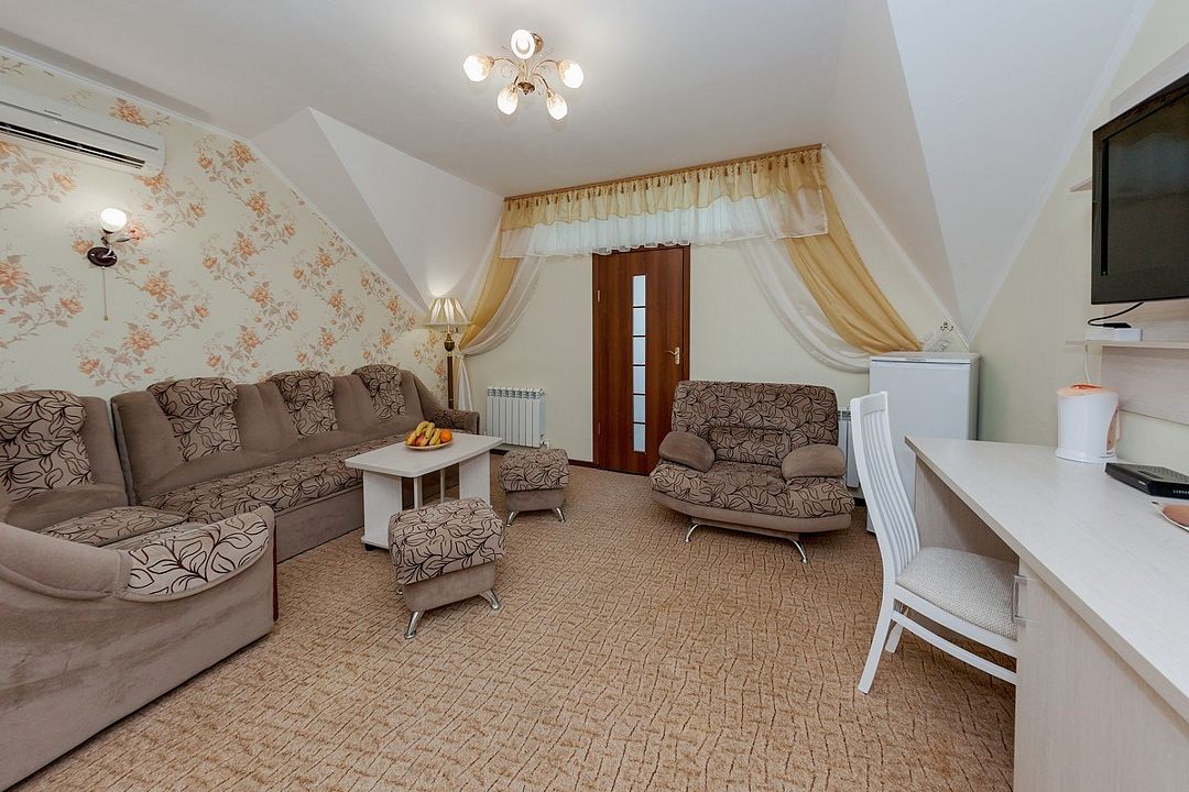 Жилой фонд рассчитан на размещение 300 человек. Отдыхающие могут выбрать номера Семейный, Эконом и Люкс. Во всех номерах имеется душ, сплит-система, телевизор, электрочайник, холодильник.