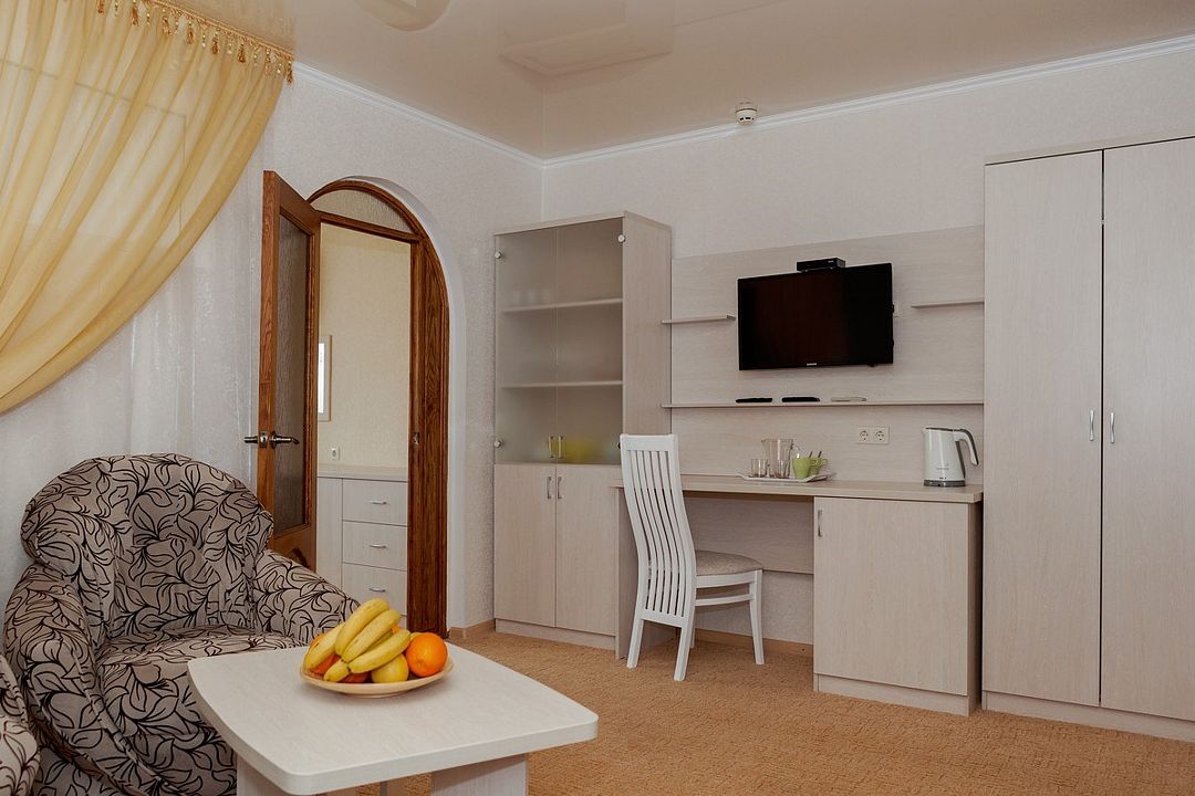 ДостоинстваРасположен пансионат неплохо, до центра Анапы пешком можно дойти за 20 минут. Территория чистая и ухоженная. Есть 2 бассейна. Море очень близко. Присутствует маленький спортивный уголок, где можно размяться или сделать зарядку. Питание нормальное, блюда разнообразное. Все всегда свежее.