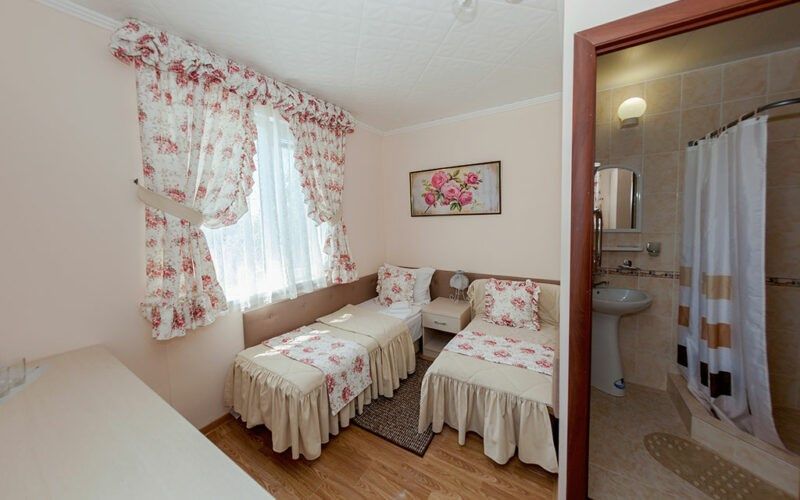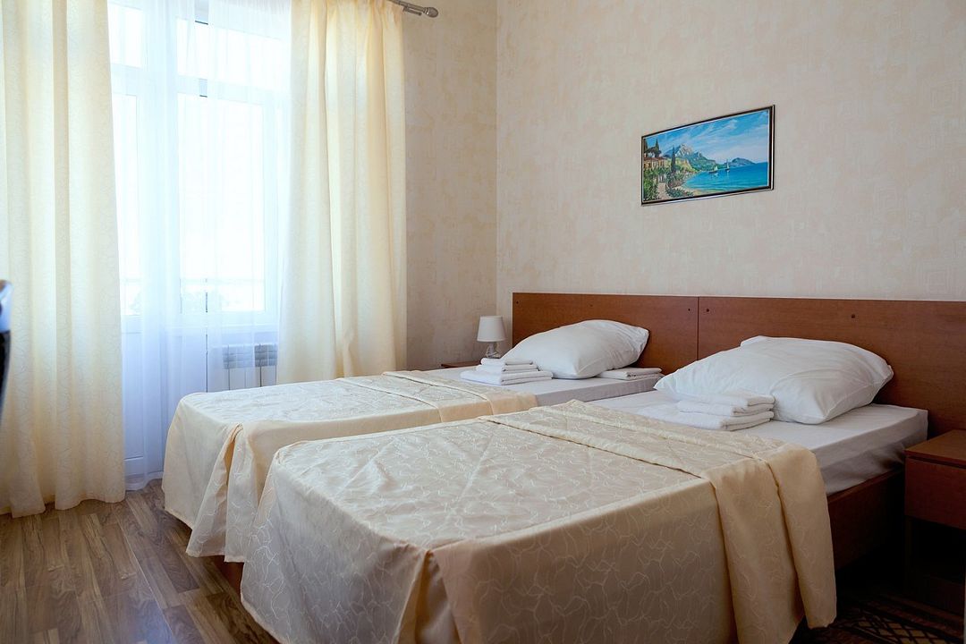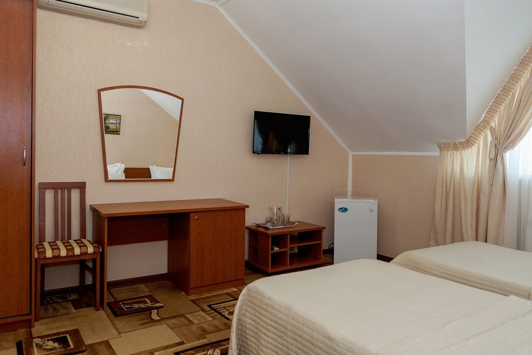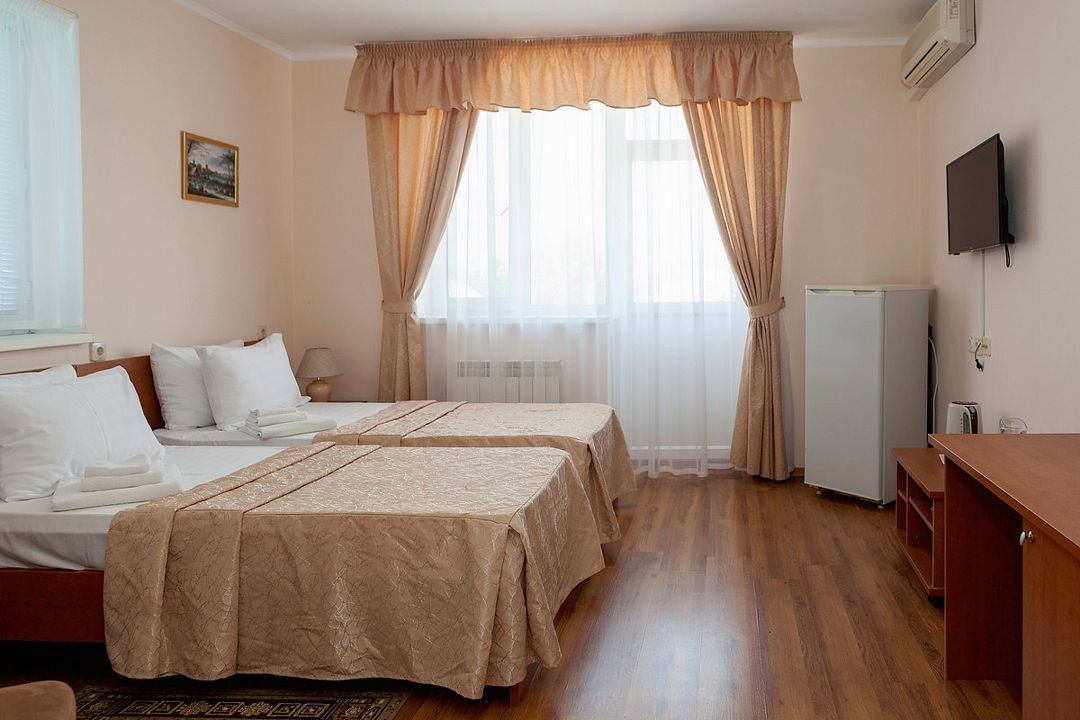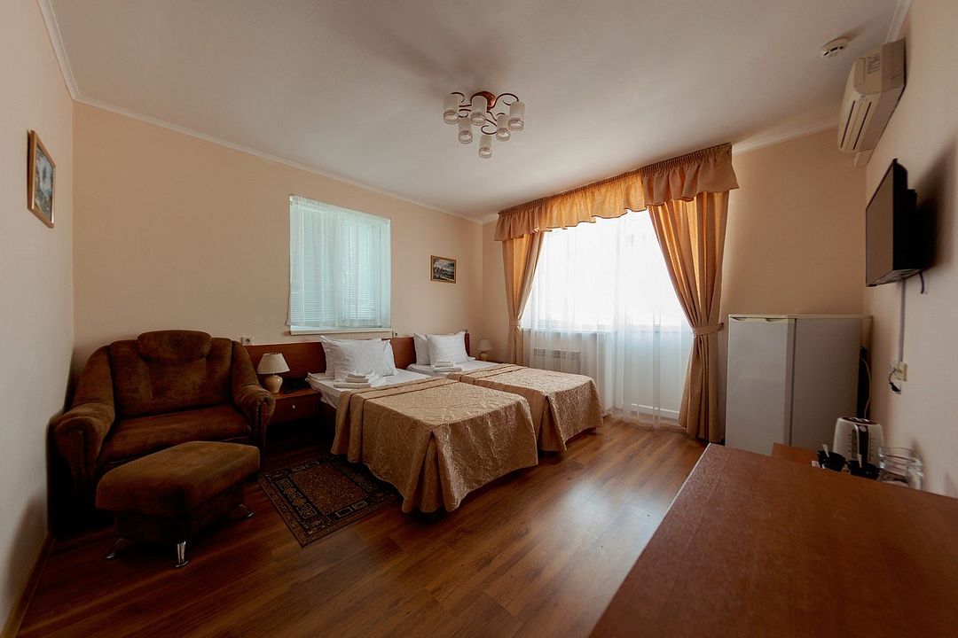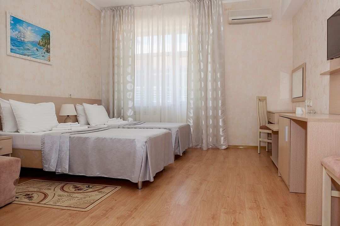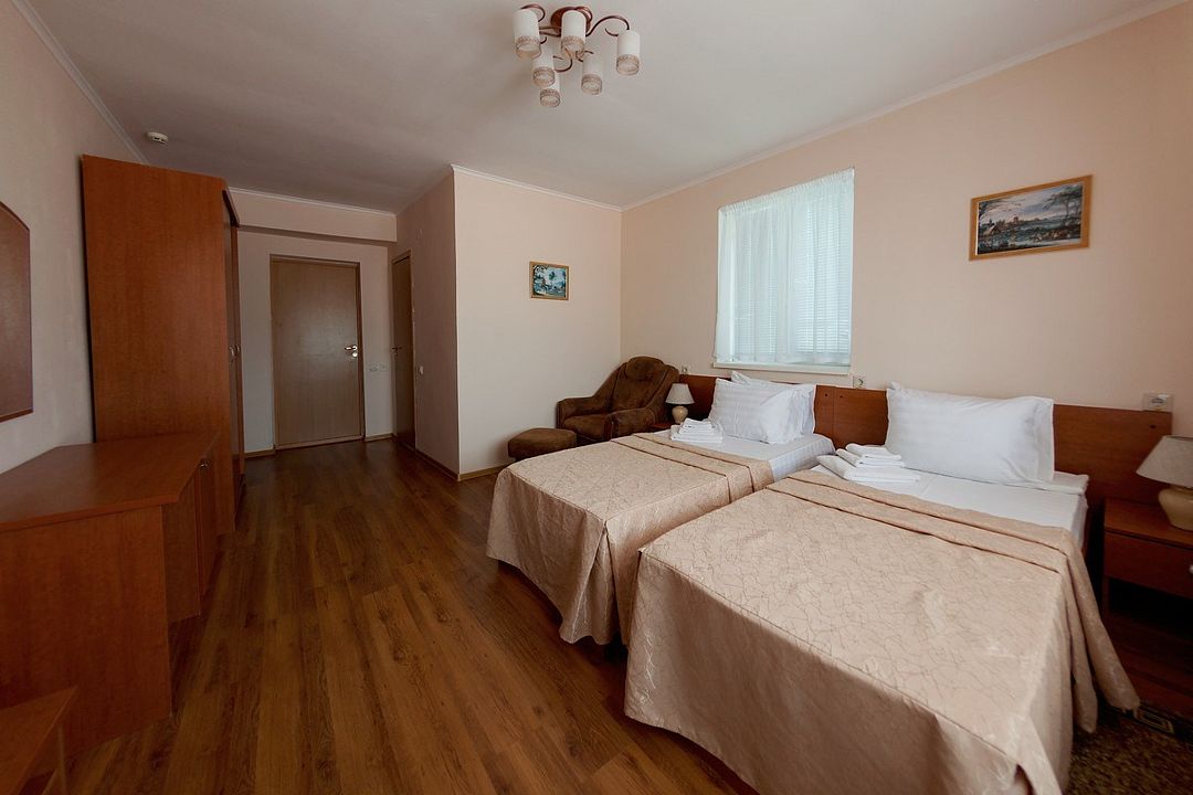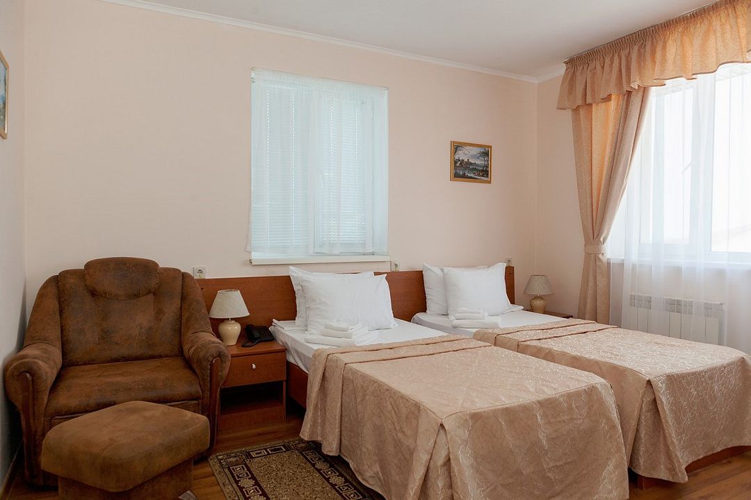 Комфортный однокомнатный эконом номер без балкона с возможностью размещения до 2 человек. Номера расположены в 5 корпусе на 2 и 3 этажах. Оптимально для отдыха одного взрослого с размещением 1 ребенка на дополнительном месте до 12 лет. Комплектация номера: две односпальные кровати, сплит-система, холодильник, телевизор, телефон. Санузел: душевая кабина, косметические принадлежности, фен.Услуги и удобства