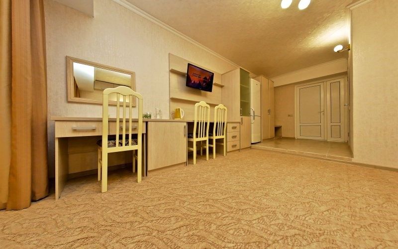 кабельное телевидение, Wi-Fi, холодильник, светильник, фен, санузел, пляжные полотенца, косметические средства, односпальная кровать, тумбы, стулья, шкаф для одежды, вешалки, багажная тумба, зеркало, раковина, душ, вид на море, кулер на этаже, вид во двор, ламинат, стаканы, столовые приборы, стол, сплит-система, сушилка для белья, раскладное кресло, телевизор с плоским экраном, мини-холодильник, москитная сетка, гостиничная парфюмерия, номер для некурящих, вид на бассейн, без питомцевВ гостиничном номере