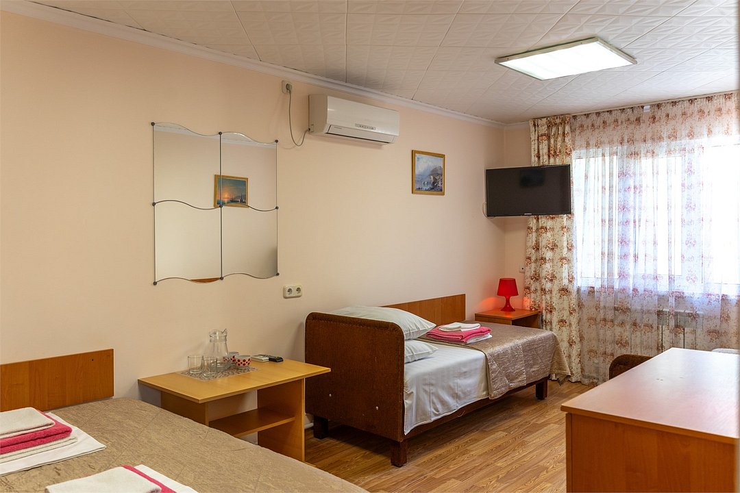 ДостоинстваС момента открытия пансионата поменялось многое и не в лучшую сторону. Нормальное расположение, номера обставлены всем необходимым.