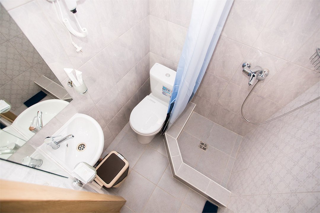 Стандартный номер эконом расположен на 1 этаже, имеет отдельный вход. В номере 2х спальная кровать, мини холодильник, шкаф для одежды, сплит-система, ванная комната оборудована душем, раковиной, унитазом, феном, туалетными принадлежностями (гель для душа, шампунь, мыло).Услуги и удобства