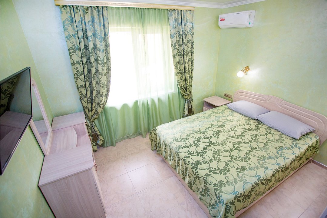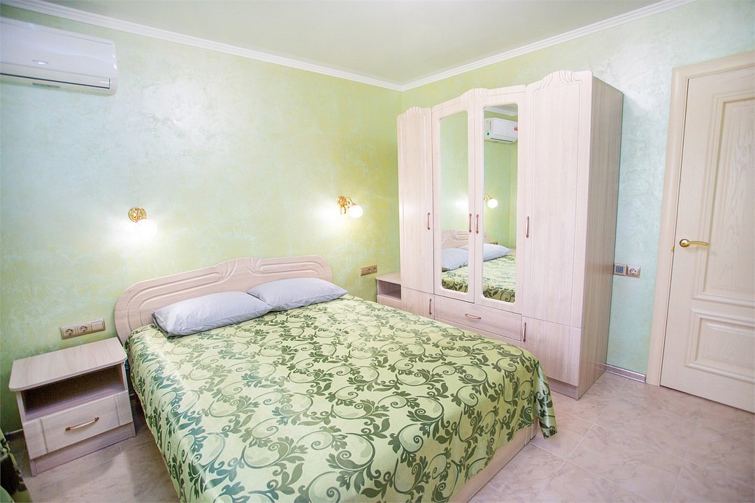 Номер на 2 этаже состоит из двух комнат и собственного санузла. Количество мест – до 4 (в спальне 2-х спальная кровать, в гостиной – раскладной 2-х местный диван). Номер оборудован сплит-системой, есть москитная сетка, шкаф для одежды, в ванной комнате - душ, раковина с зеркалом, фен, полотенцесушитель, туалетные принадлежности (гель для душа, шампунь и мыло), чайник и набор посуды.Услуги и удобства
