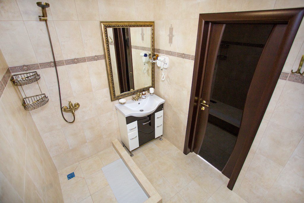 Стандартный номер на 1 этаже состоит из одной комнаты и собственного санузла. Количество мест – 2 (2-х спальная кровать). В ванной комнате - душ, унитаз, раковина с зеркалом, полотенцесушитель, фен, туалетные принадлежности (гель для душа, шампунь и мыло). В номере есть сплит-система, холодильник , Wi FiУслуги и удобства