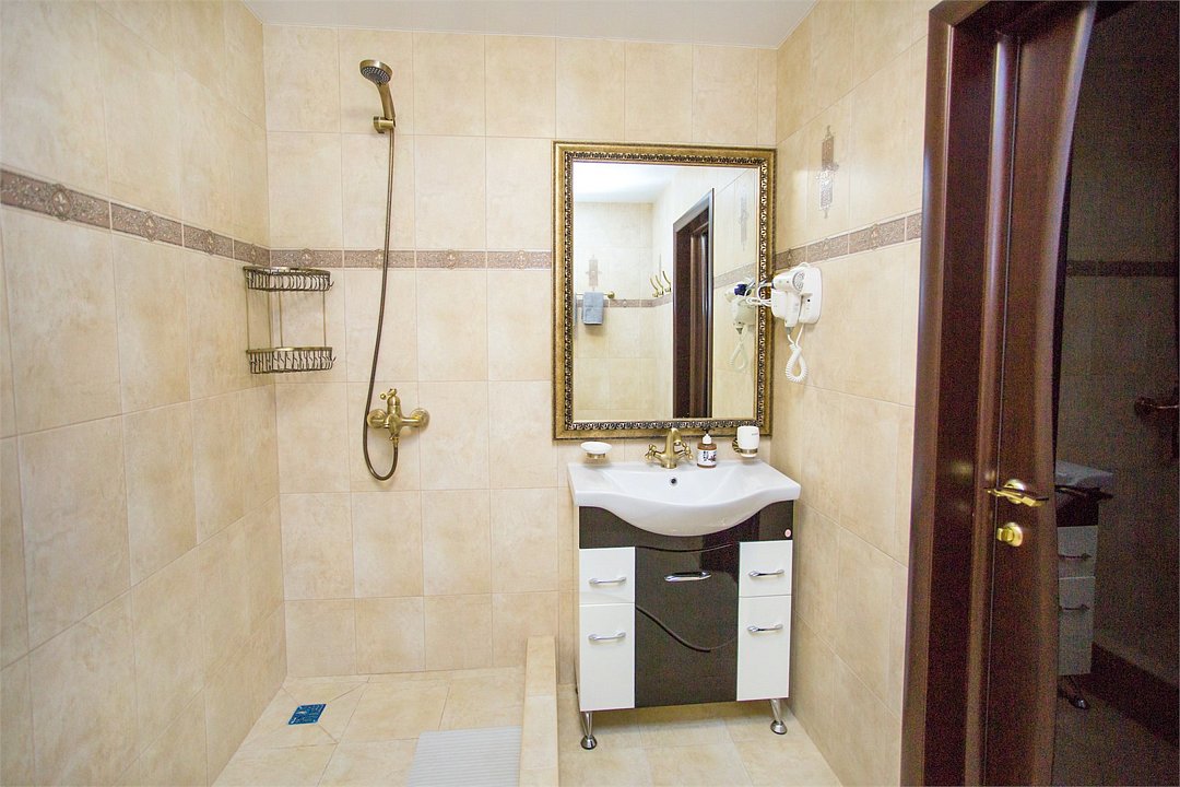 Стандартный номер на 1 этаже состоит из одной комнаты и собственного санузла. Количество мест – до 4 (2-х спальная кровать и 2-х местный раскладной диван). В номере есть шкаф для одежды, сплит-система. В ванной комнате душ, унитаз, раковина с зеркалом, фен, полотенцесушитель, туалетные принадлежности (гель для душа, шампунь и мыло).Услуги и удобства