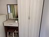Двухспальная кровать 1.40 м, кресло-кровать 80 см, шкаф, вешалка для верхней одежды, трюмо, зеркало, прикроватная тумбочка, телевизор, кондиционер.