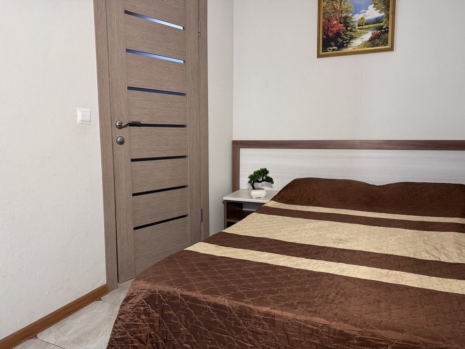 Двухспальная кровать 1.40 м, диван-кровать 1.40 см, шкаф, трюмо, зеркало, прикроватная тумбочка, телевизор, кондиционер, мини-холодильник.