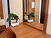 Двухспальная кровать 1.40 м или две кровати 80 см, диван-кровать 1.40 м, шкаф, вешалка для верхней одежды, тумбочка для обуви, трюмо, зеркало, прикроватная тумбочка, телевизор, кондиционер.